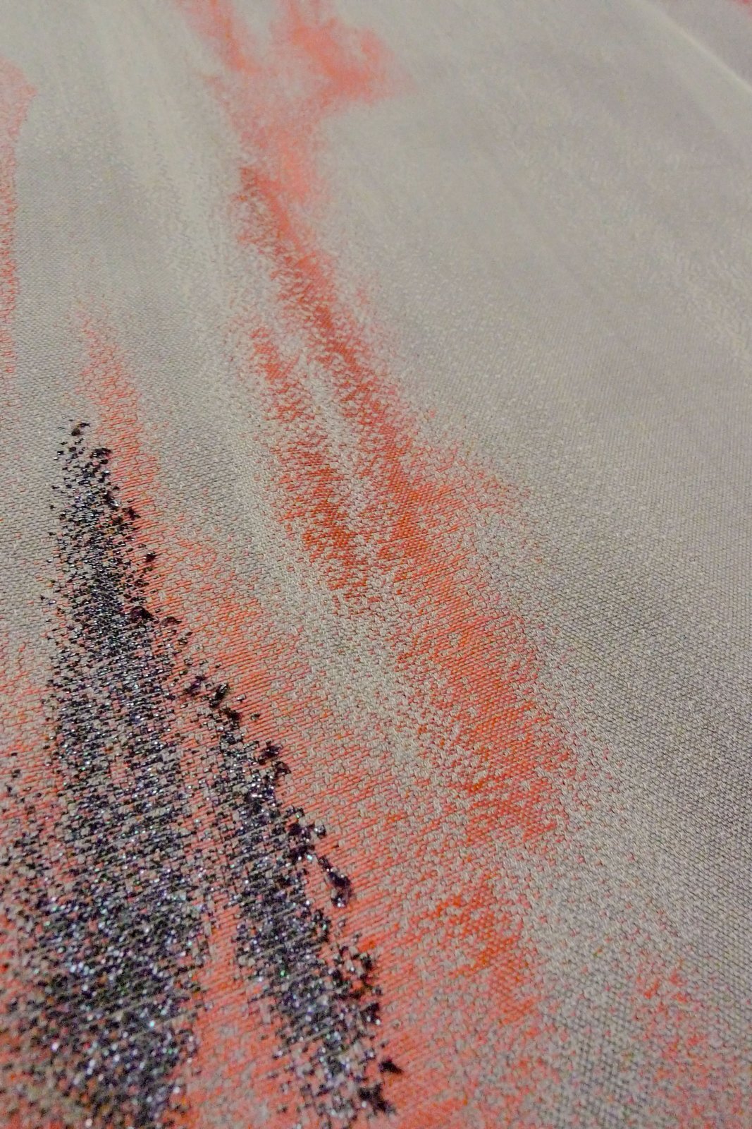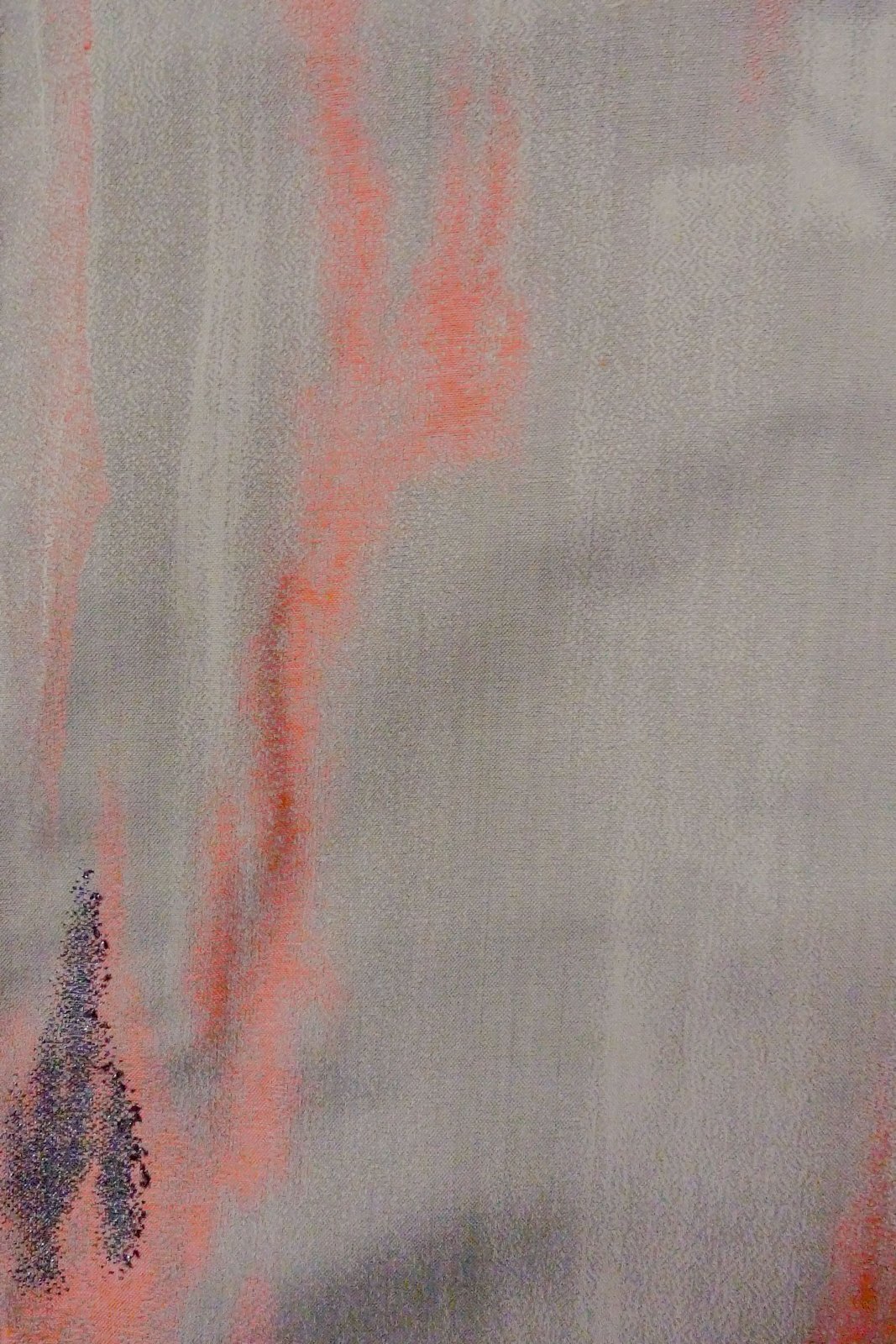 O0718G Vintage Japanese kimono Gray ORI woven for women / Silk. Gradation, (Grade C)