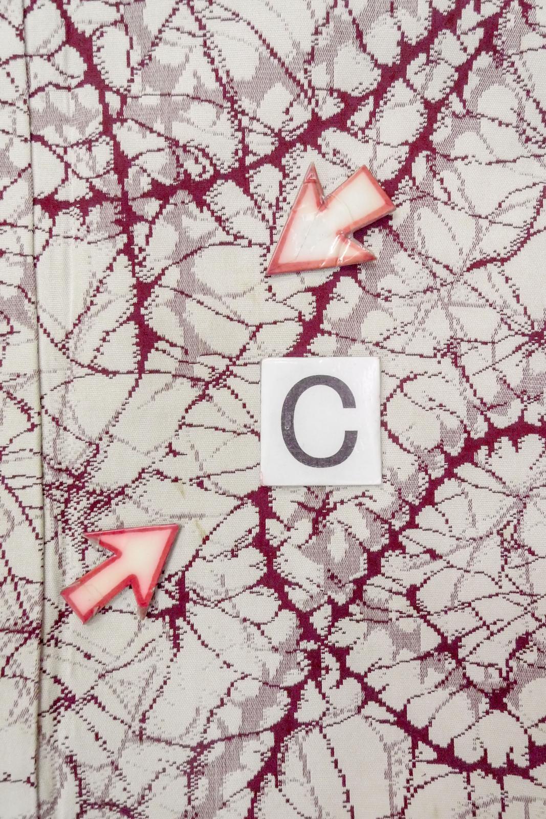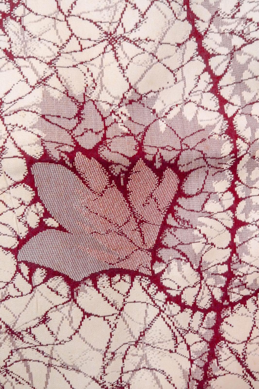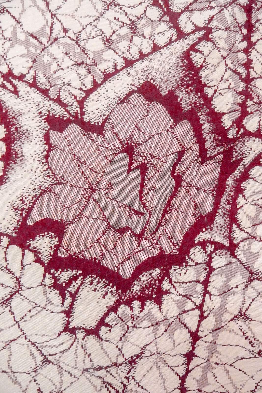 O0718I Vintage Japanese kimono White ORI woven for women / Silk. Rose, (Grade C) [O0718I]