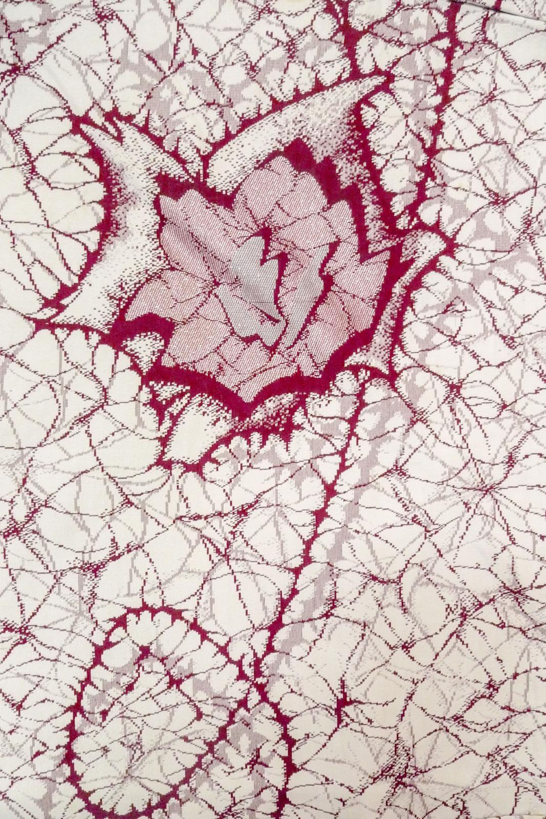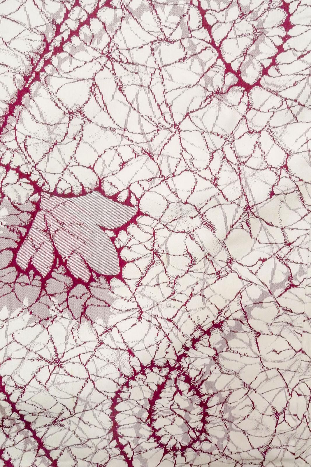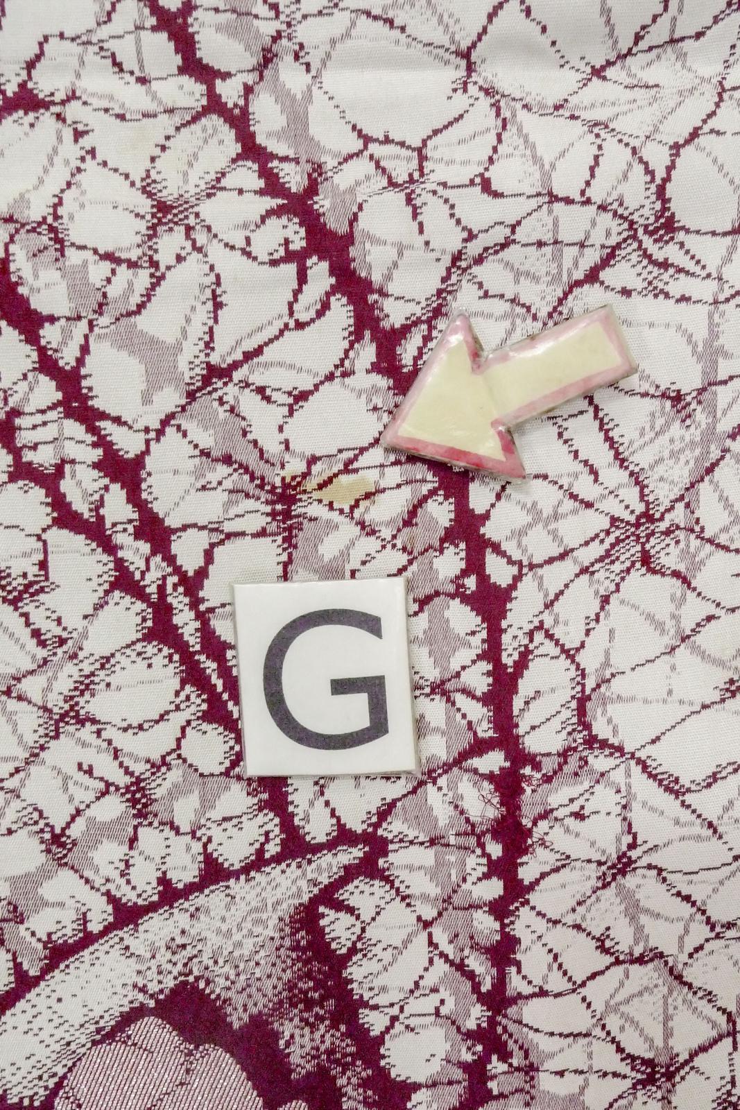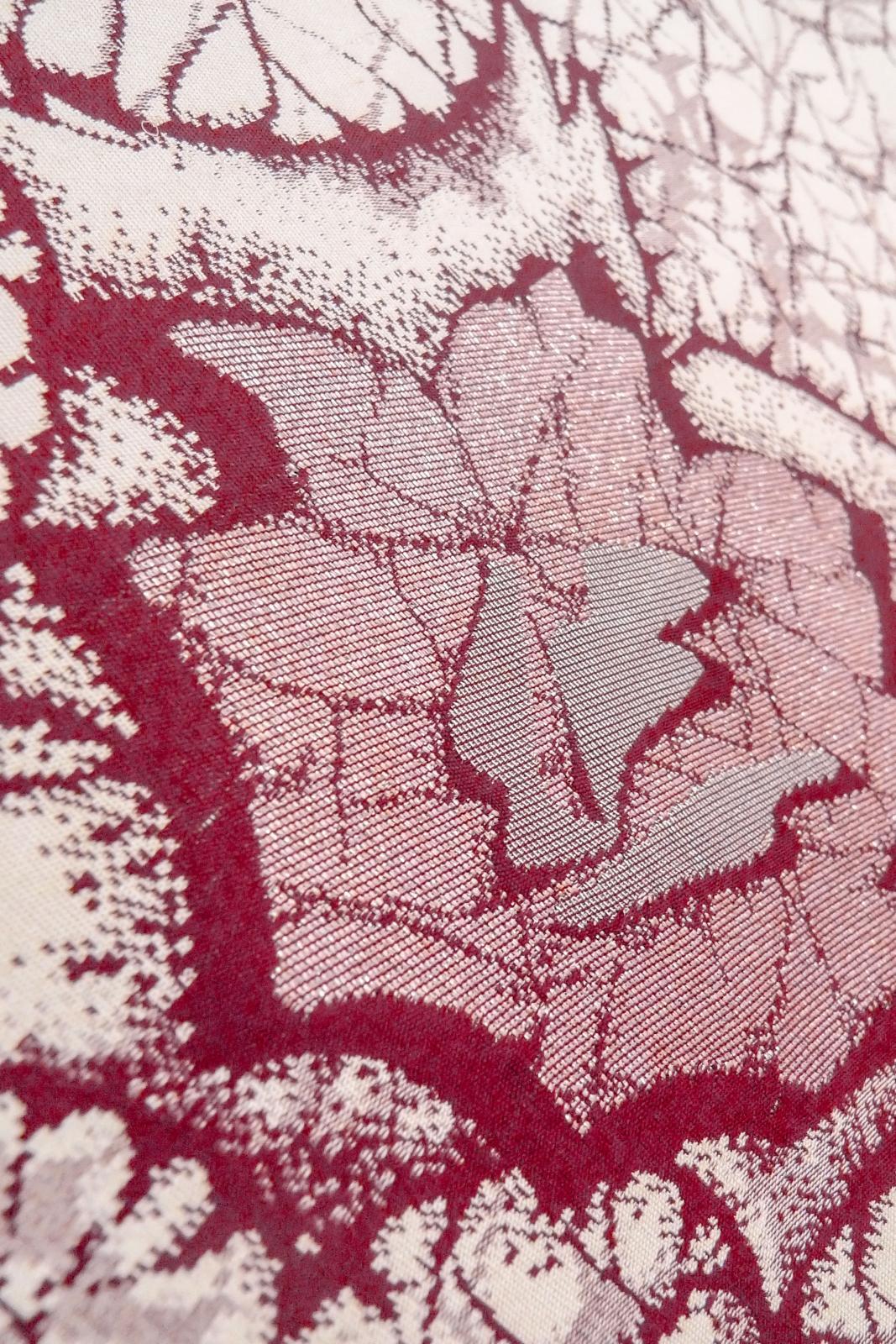 O0718I Vintage Japanese kimono White ORI woven for women / Silk. Rose, (Grade C) [O0718I]