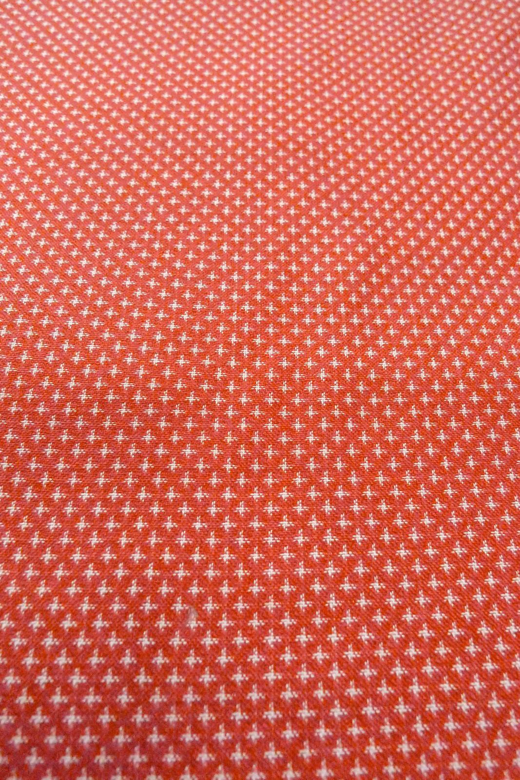 O0718N Vintage Japanese kimono Vivid Vermilion ORI woven for women / Silk. Cross (Grade A) [O0718N]