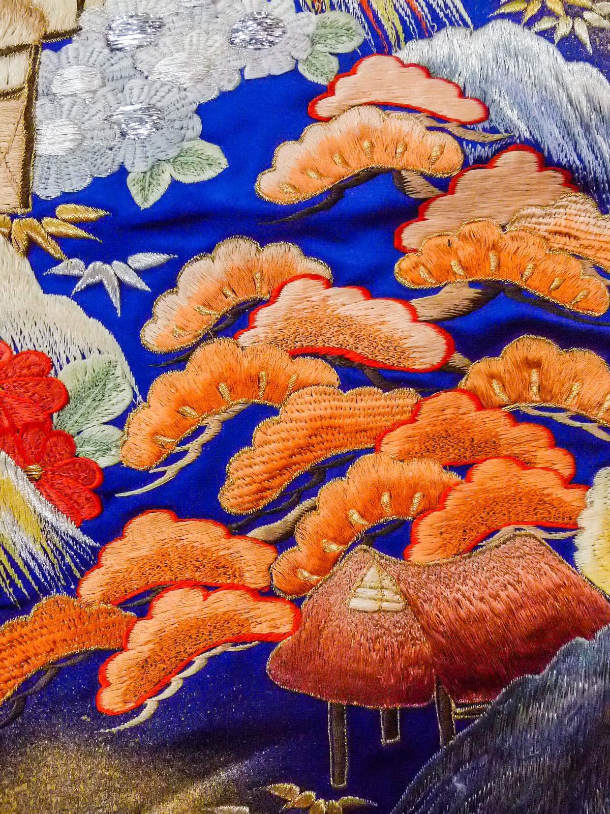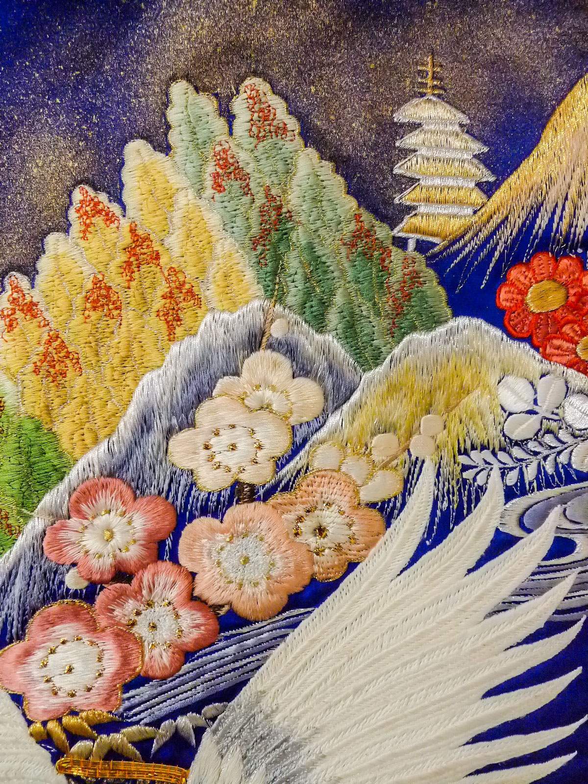 Design/Pattern : UME plum bloom,Japanese wisteria,Iris,Pine tree/branch/needle,Crane,House,MountainStream