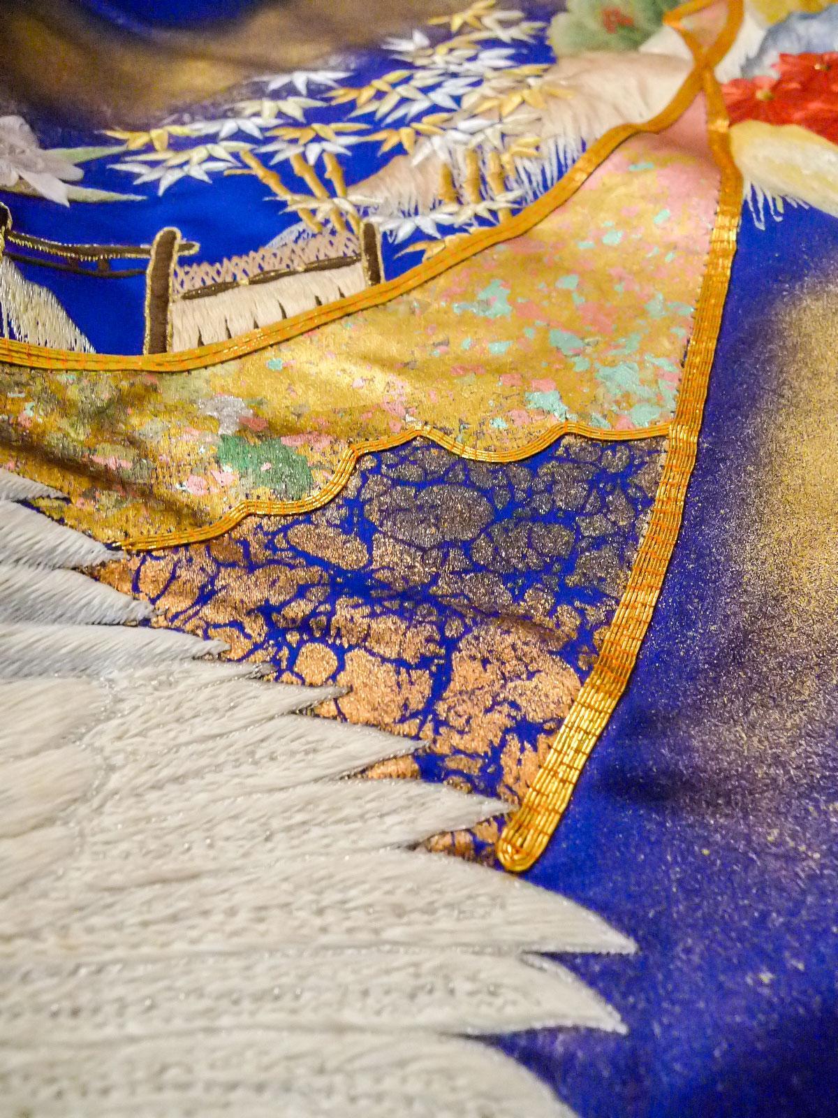 Other :Gold cord outlines,Gold thread,Silver thread,Gold foil,Gold powder.hand-sewn