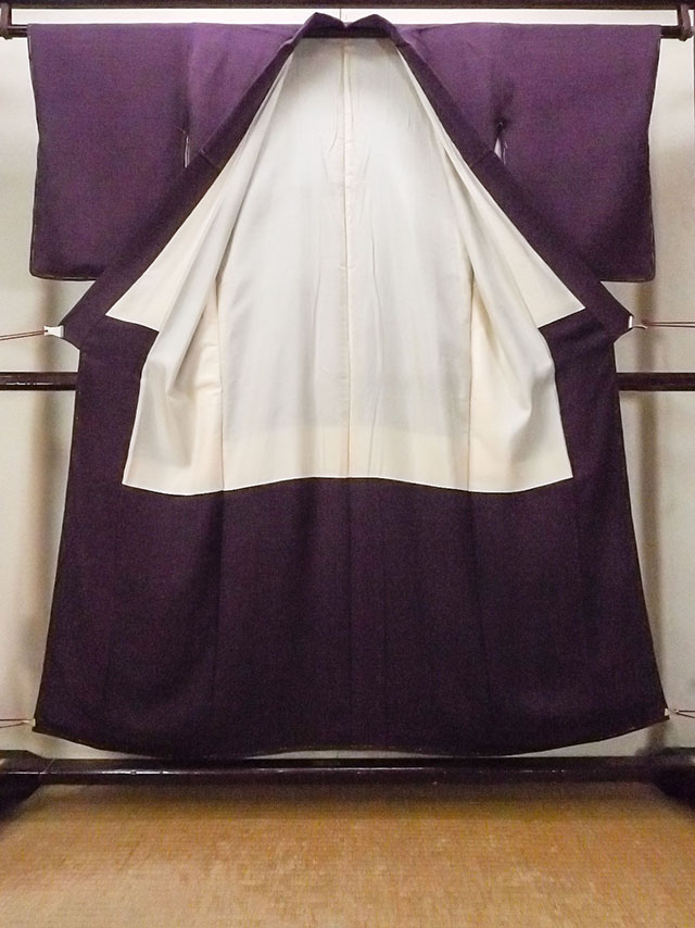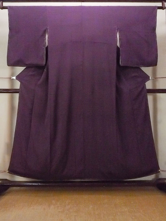 Kimonoya Japan : O0805B Vintage Japanese kimono Purple IROMUJI plain colored for women / Silk. Line, (Grade B) / Iromuji