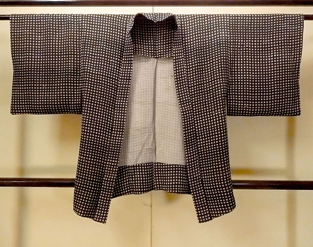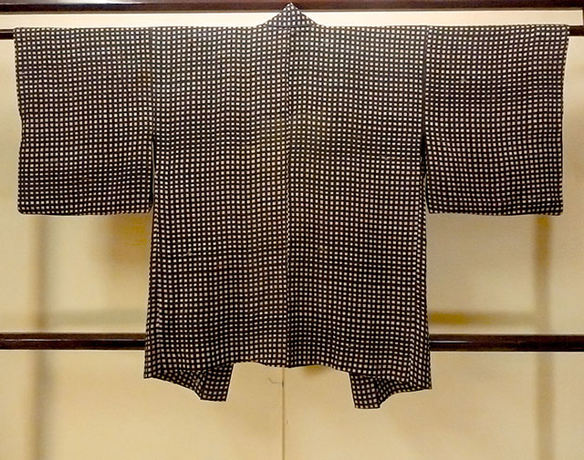 O0805G Vintage Japanese kimono Black HAORI short jacket for women / Silk. Plaid Checks (Grade C) [O0805G]