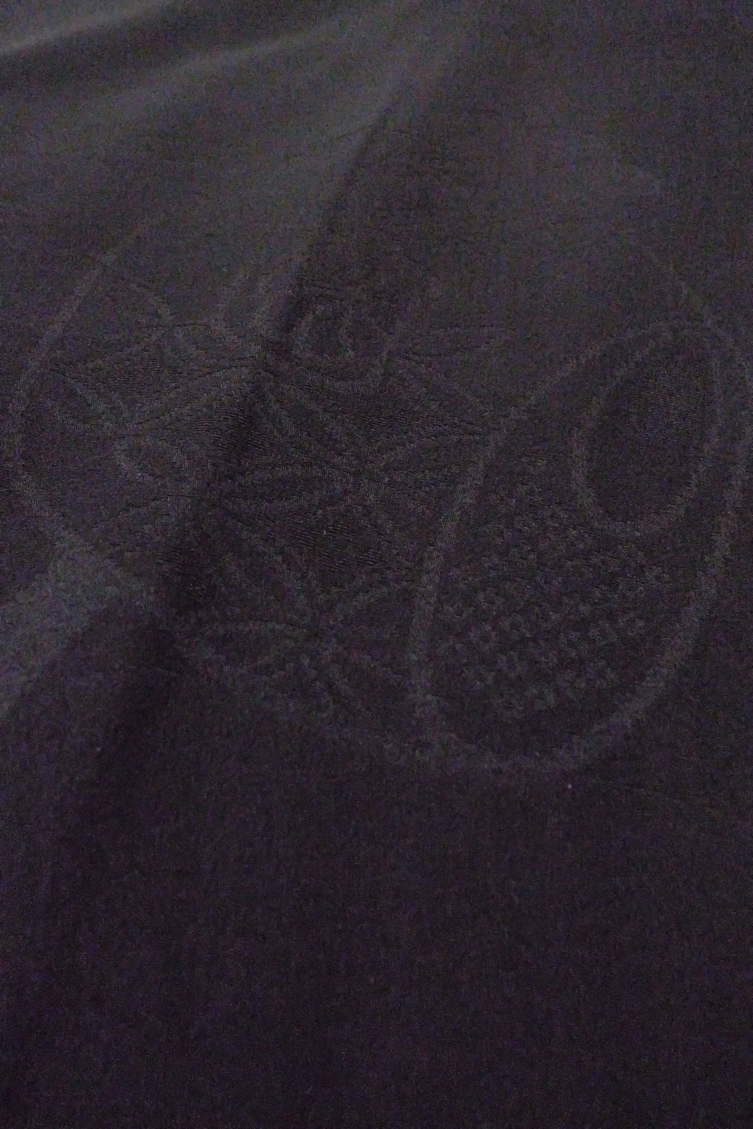 O0805J Vintage Japanese kimono Black HAORI short jacket for women / Silk. Base woven pattern: Treasures, Crossed circles, Dapple pattern (Grade B) [O0805J]