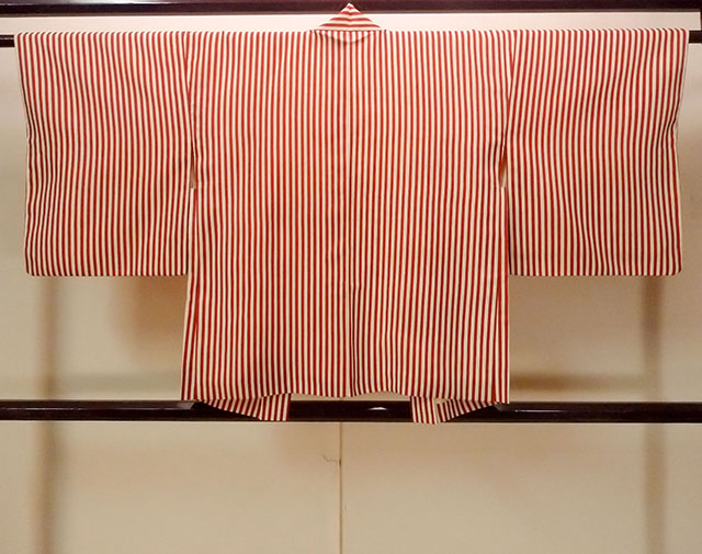 O0805K Vintage Japanese kimono Off White HAORI short jacket for women / Silk. Stripes (Grade D)