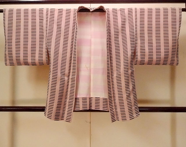 O0805L Vintage Japanese kimono Grayish Pink HAORI short jacket for women / Silk. Stripes (Grade C)