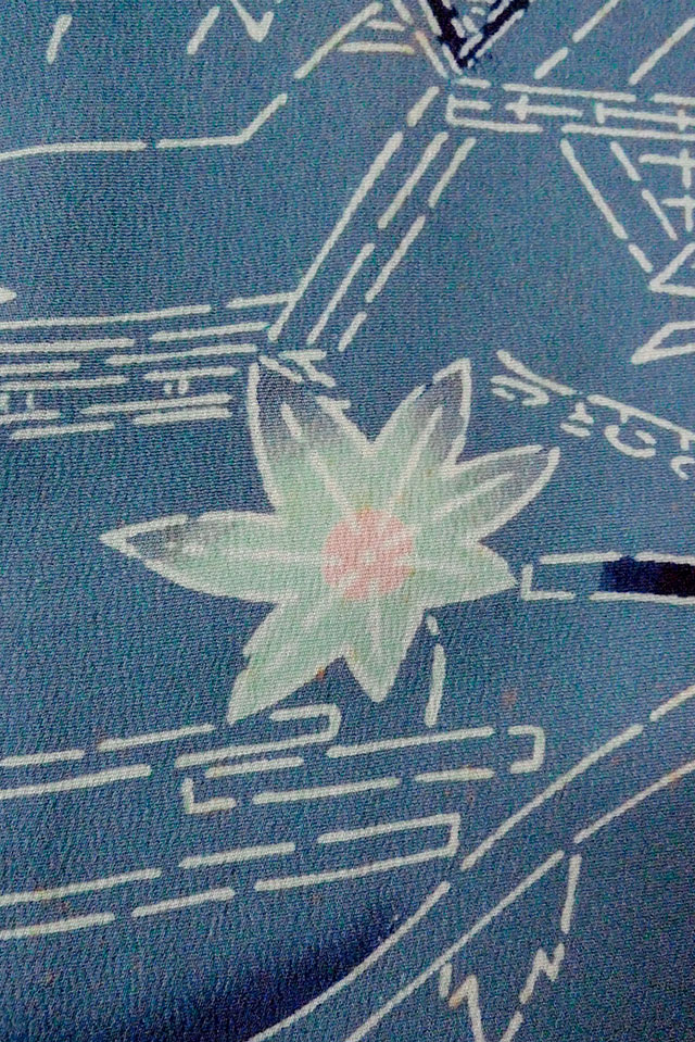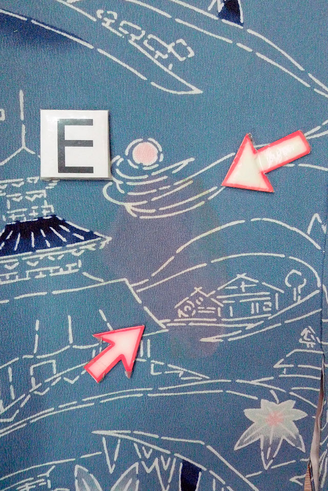 Notice :CHIRIMEN crepe.The lining has many soils, stains or turned a bit yellow.Stains/Soils all over.