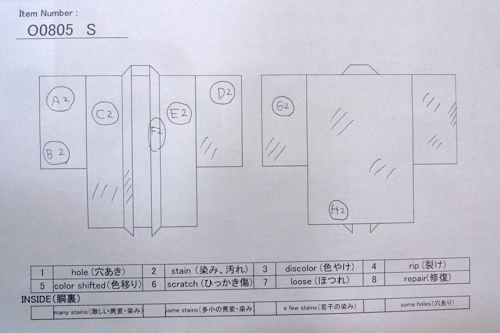 | condition: | (Grade C) | lower lining (HAKKAKE) : | ||