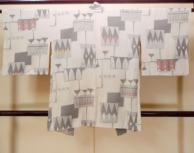 O0805Y Vintage Japanese kimono Gray HAORI short jacket for women / Silk. Geometrical pattern (Grade C)