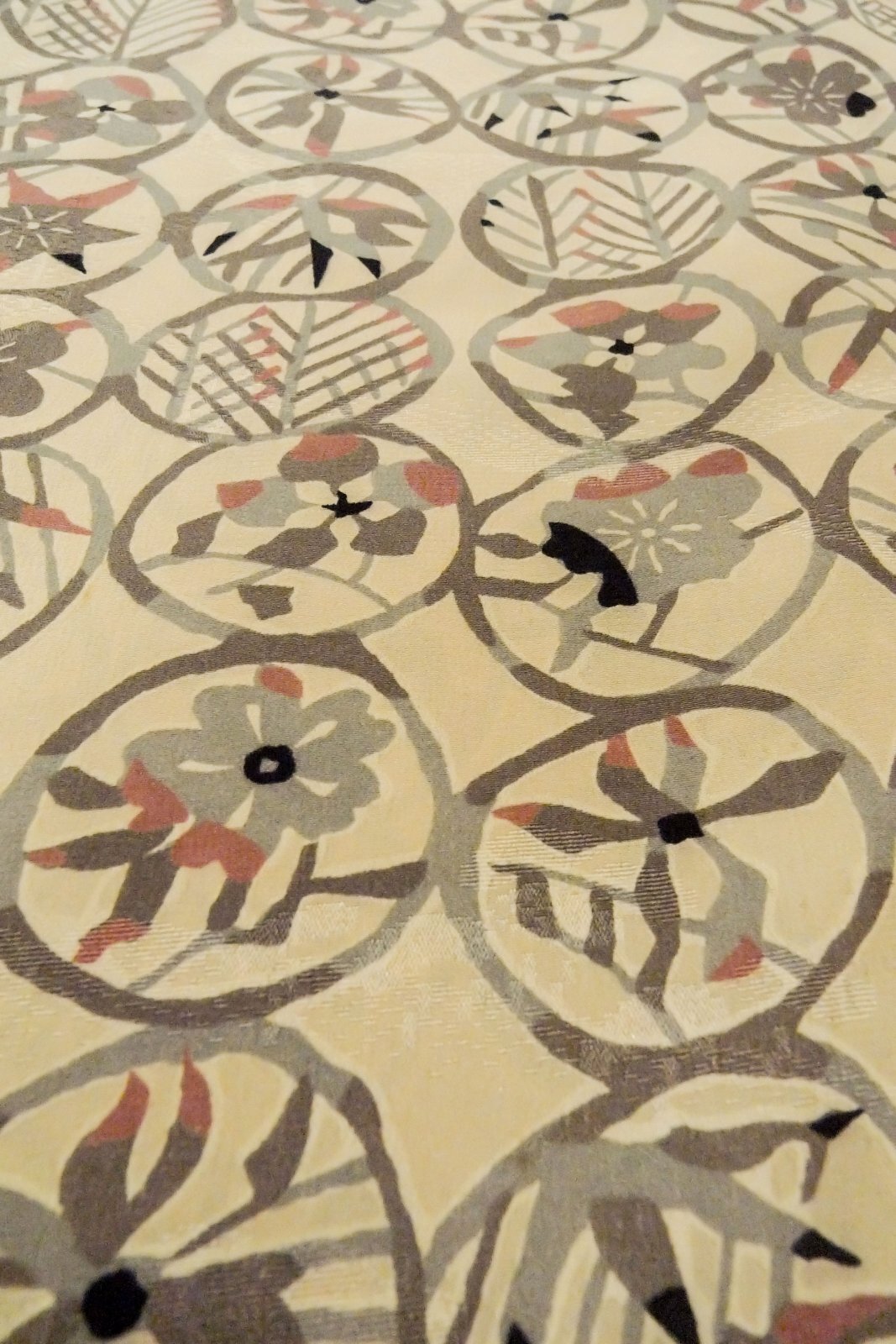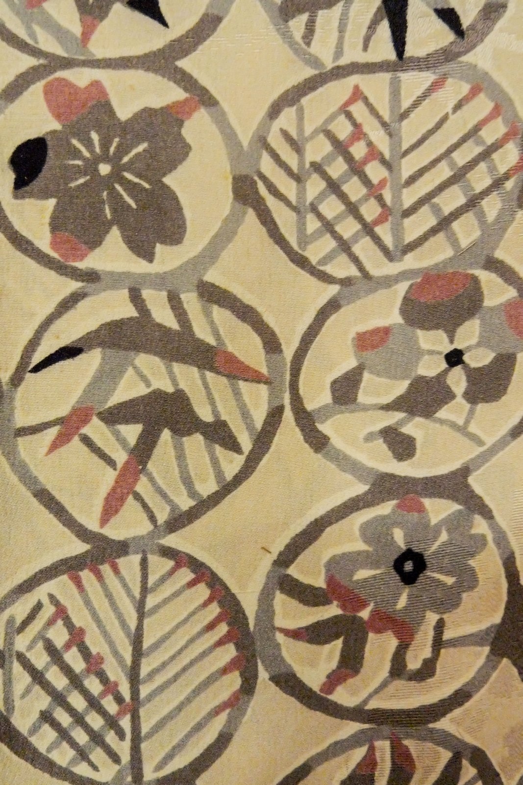 O0806D Vintage Japanese kimono Light Ivory HAORI short jacket for women / Silk. Flower, (Grade C)