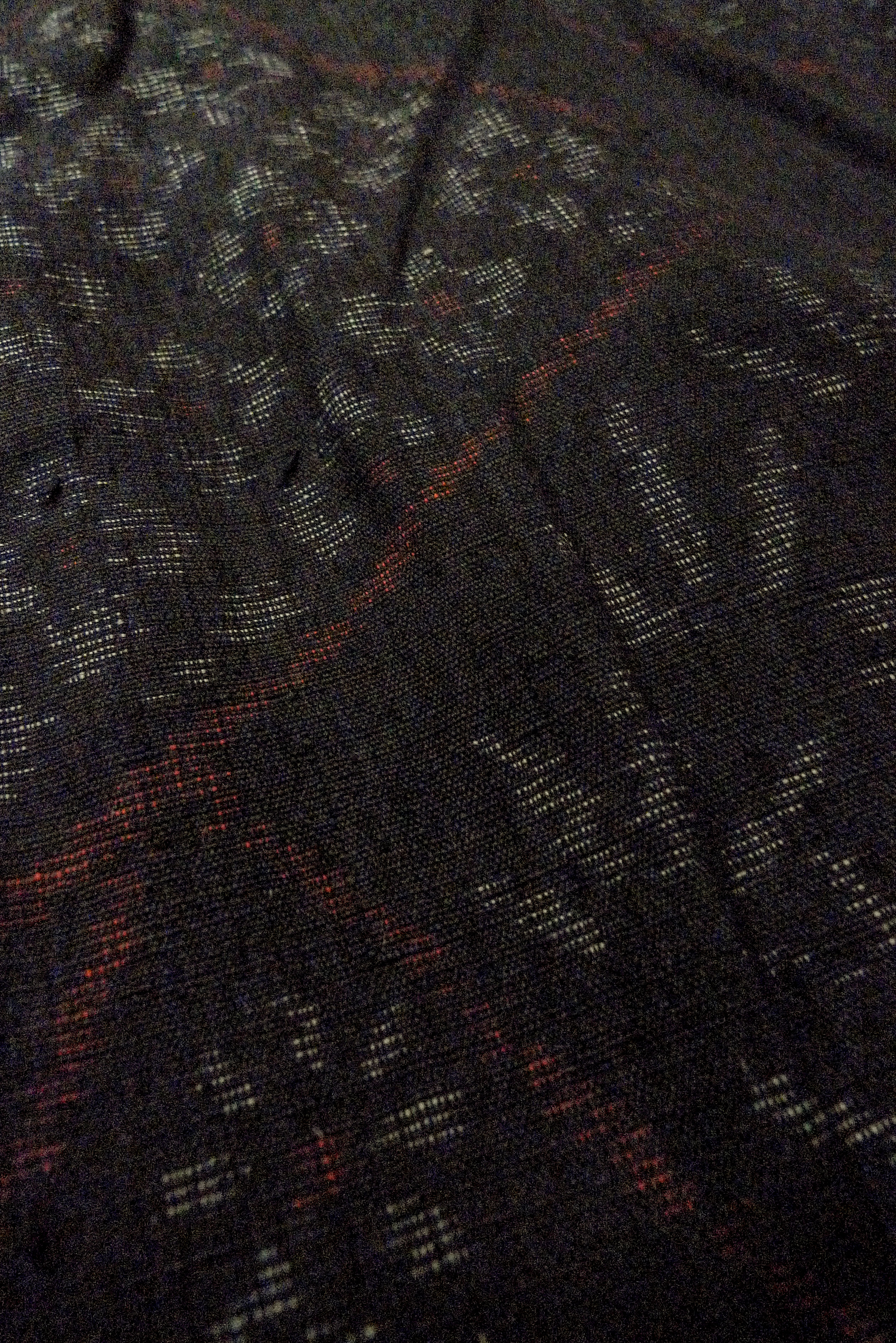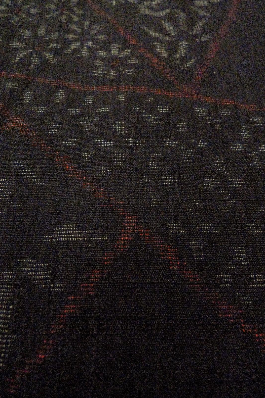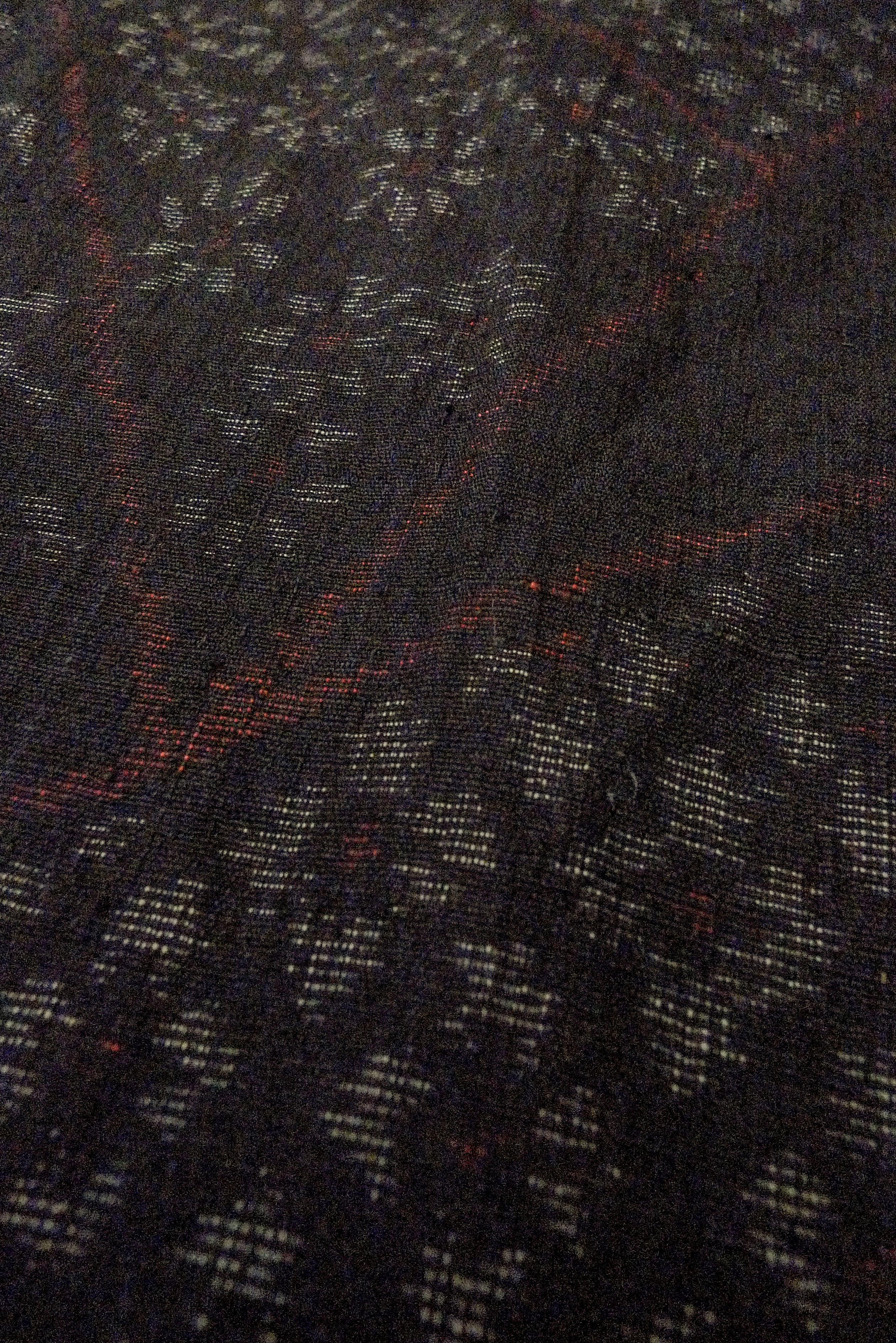 Mint O0711K Vintage Japanese kimono Black TSUMUGI pongee for women / Silk. Flower, (Grade A)