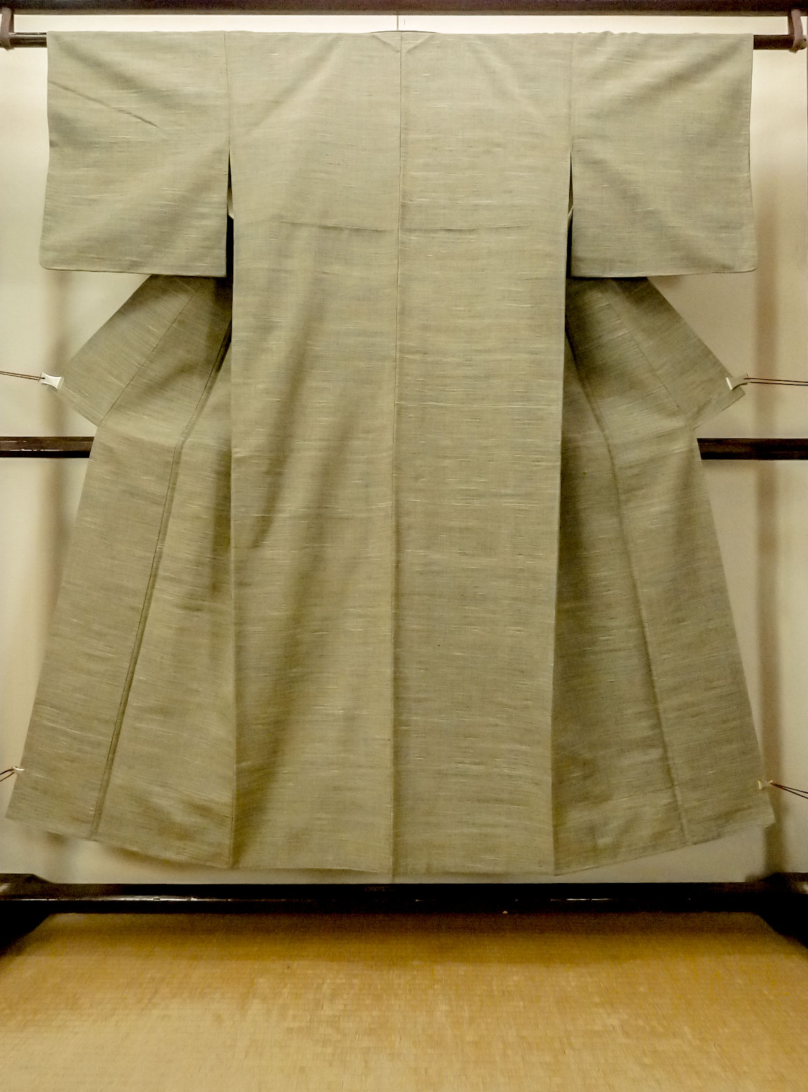 Mint O0711L Used Japanese kimono Grayish Multi Color TSUMUGI pongee for women / Silk. Line (Grade A)