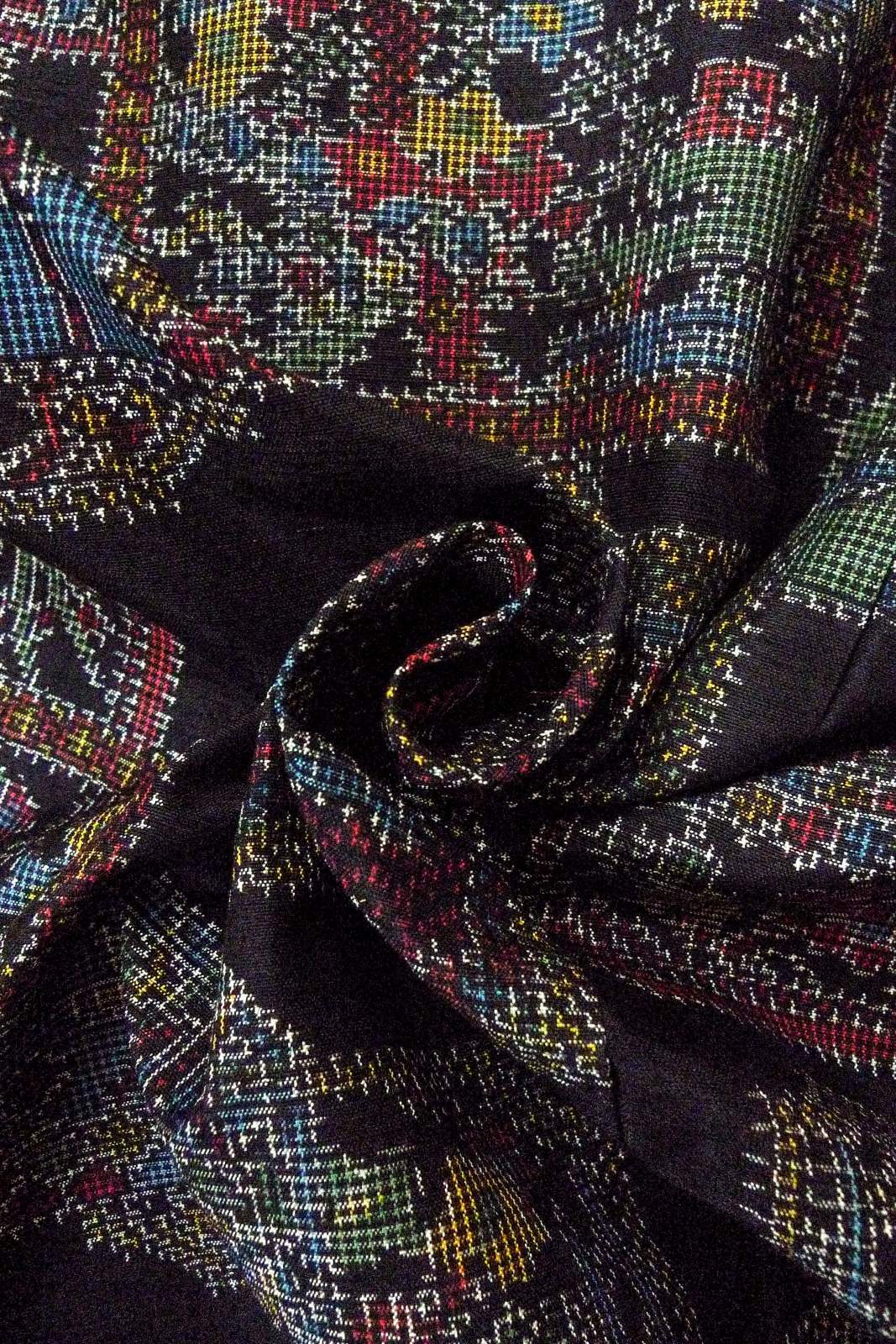 O0711M Used Japanese kimono Black TSUMUGI pongee for women / Silk. Flower, (Grade B) [O0711M]