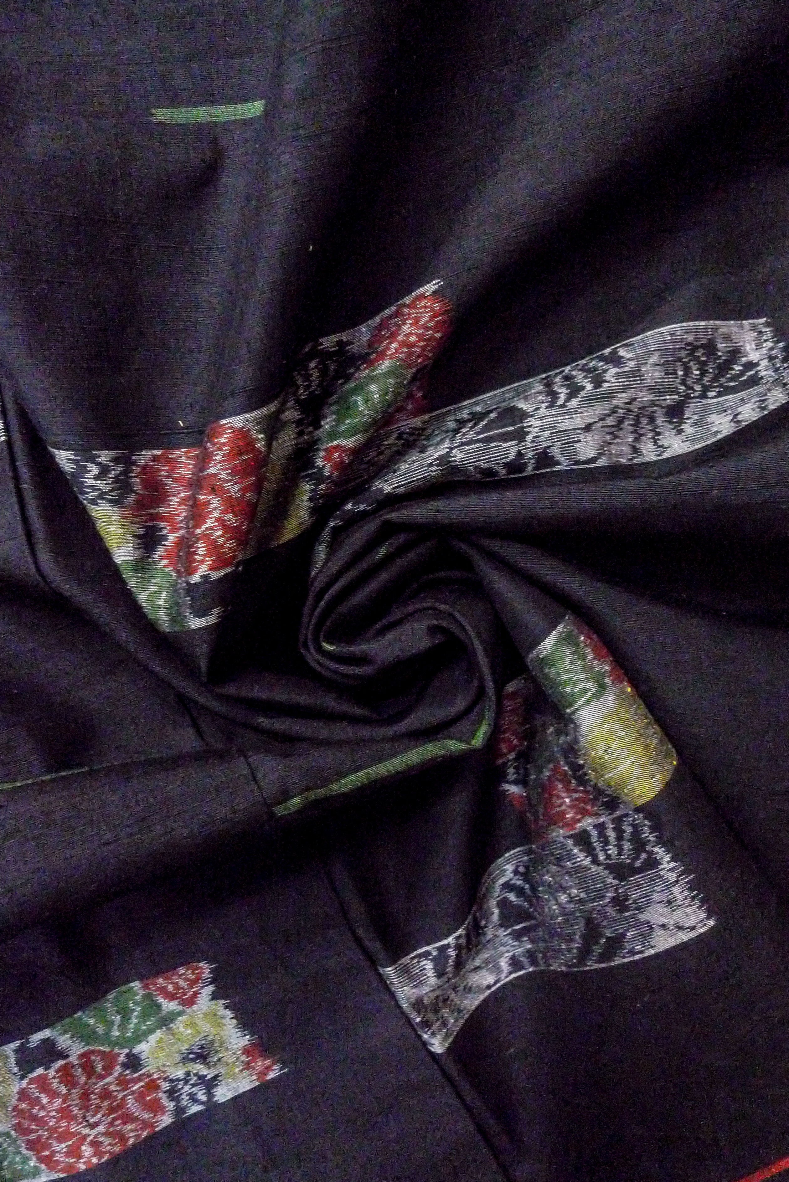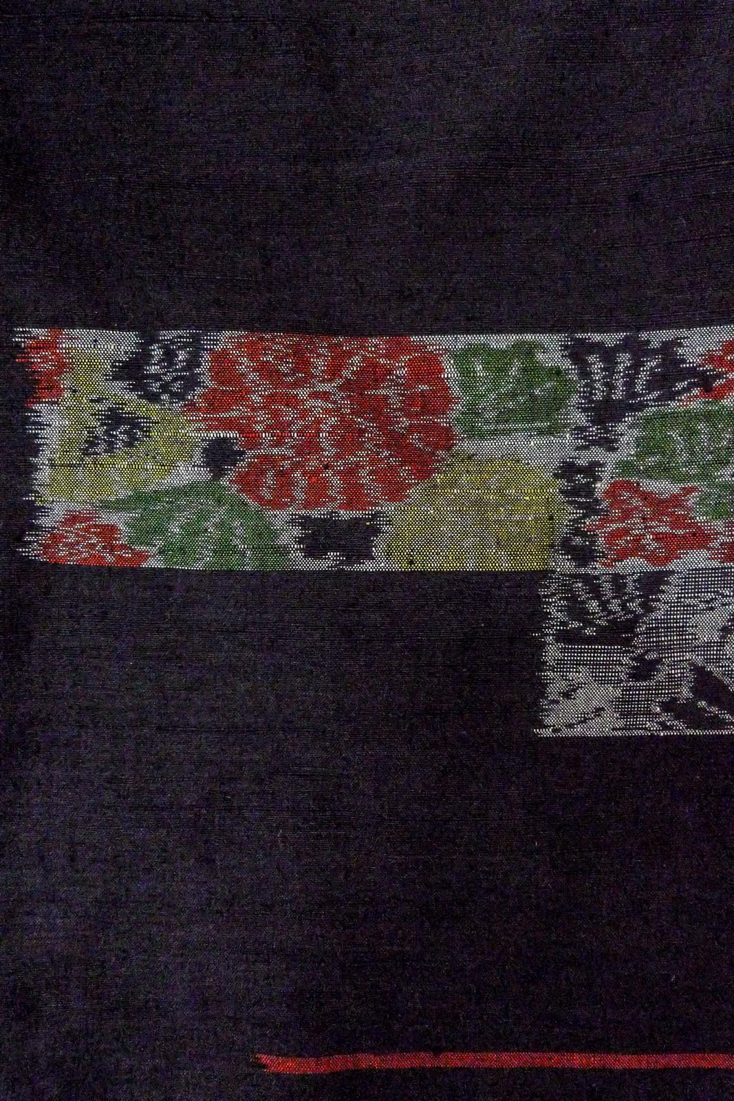 O0711R Used Japanese kimono Black TSUMUGI pongee for women / Silk. Flower, (Grade B) [O0711R]