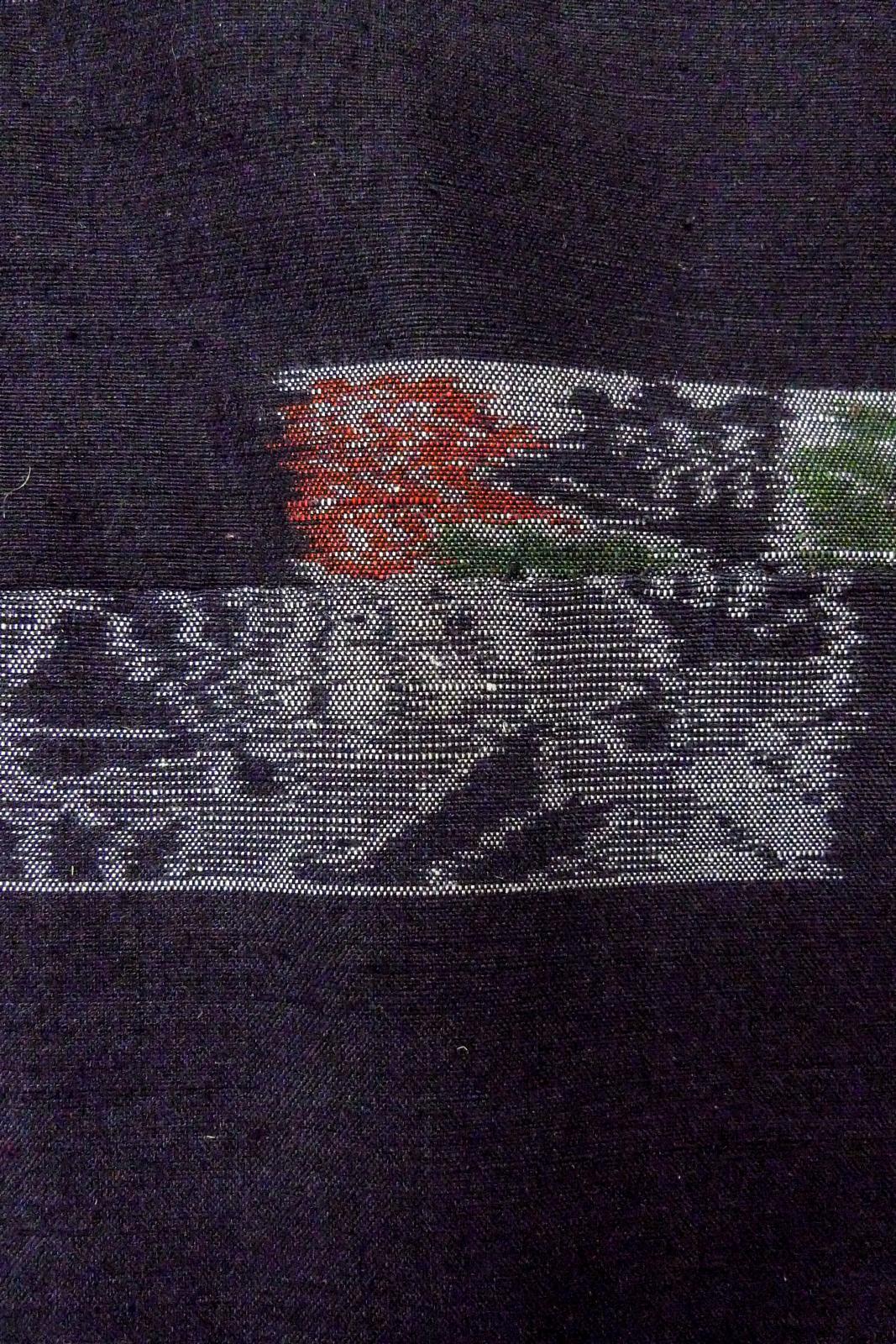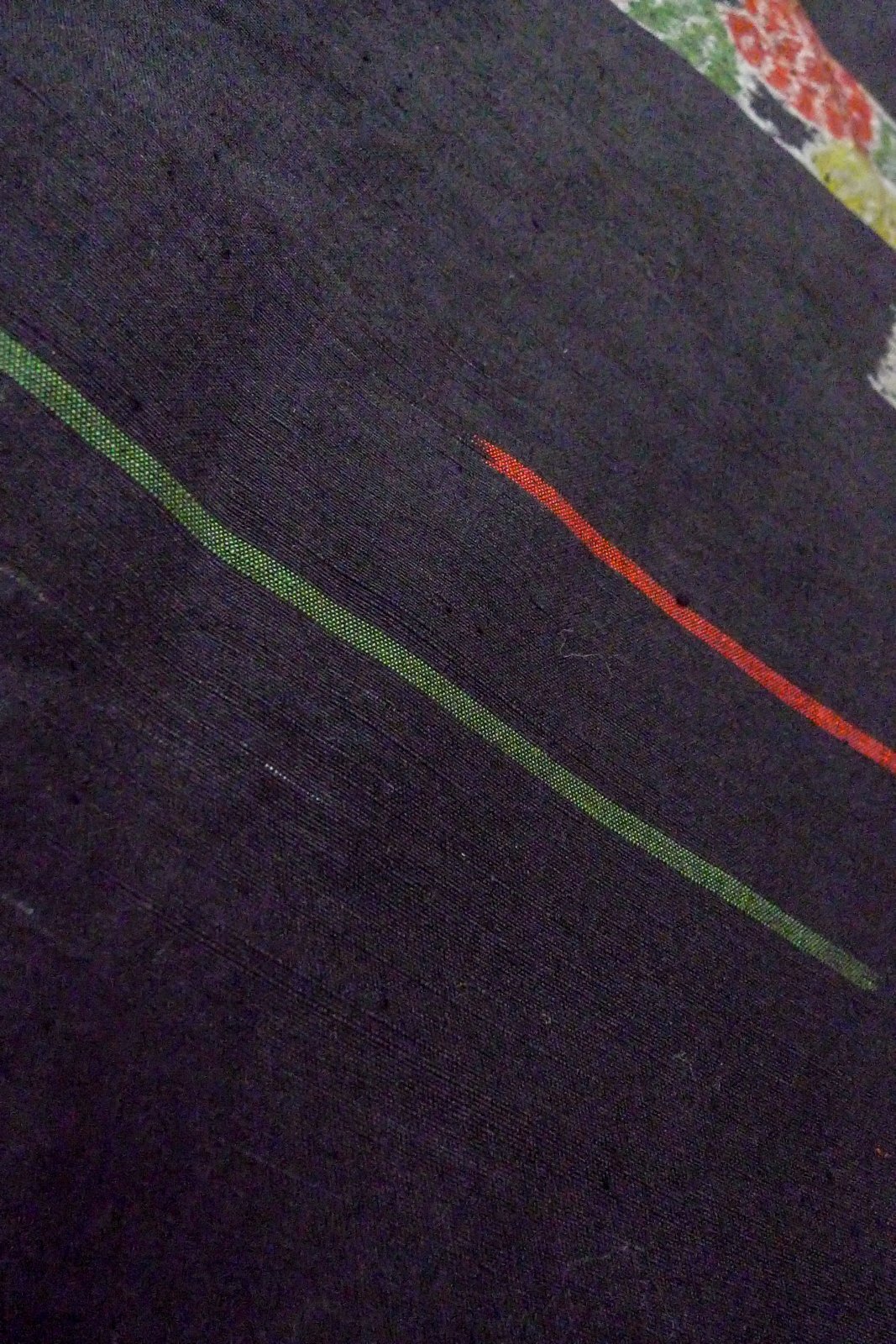 O0711R Used Japanese kimono Black TSUMUGI pongee for women / Silk. Flower, (Grade B)