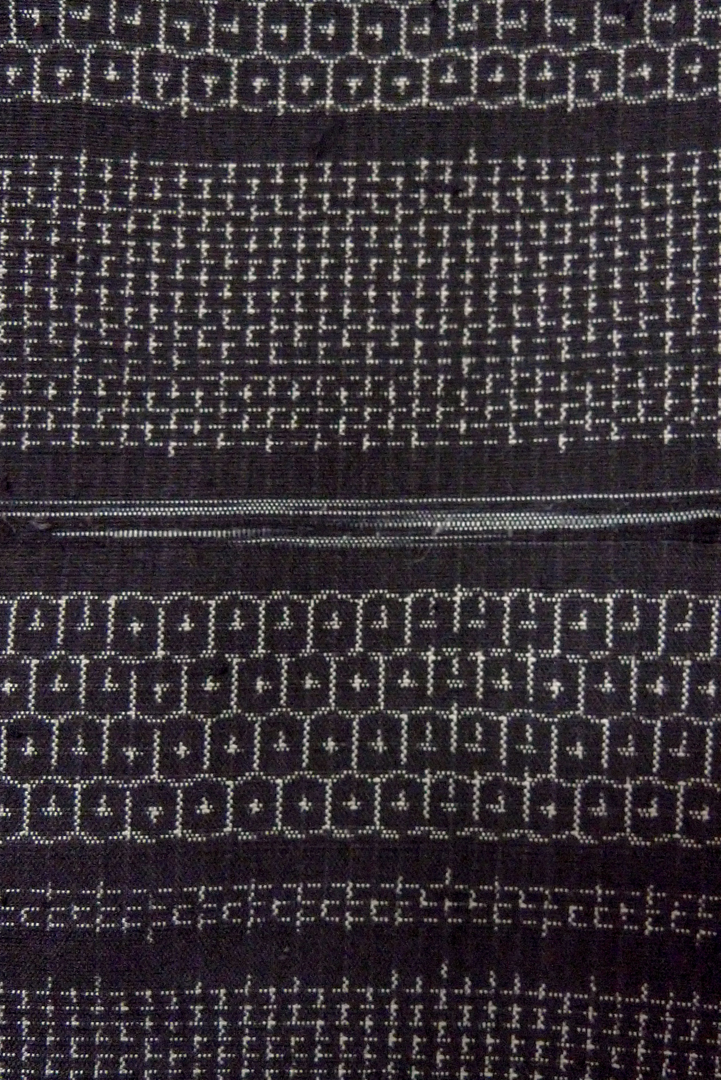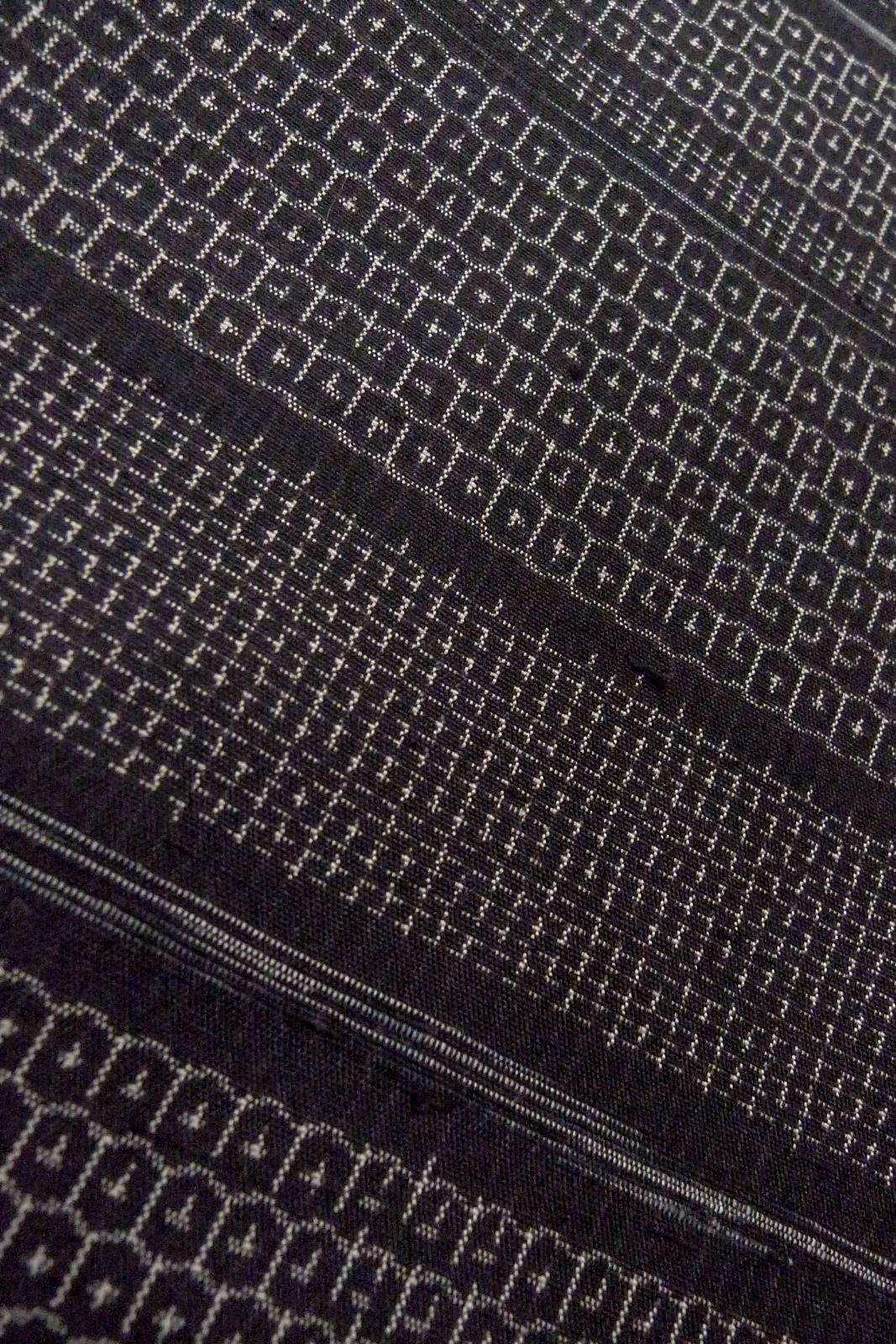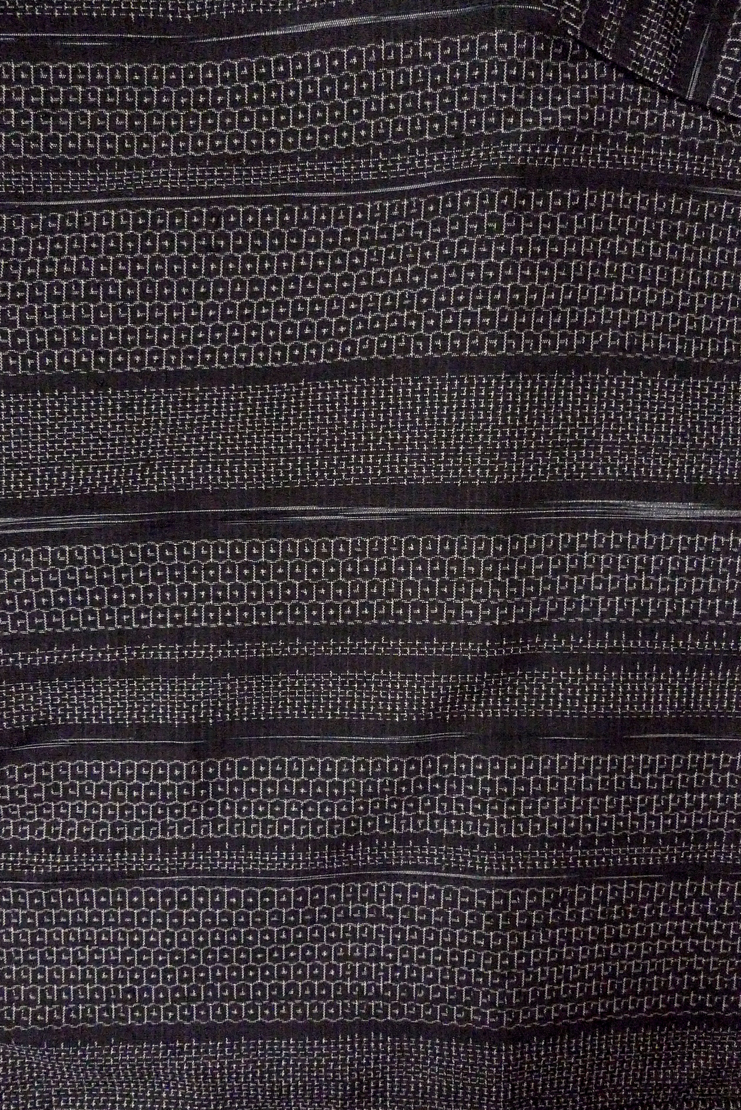 O0711T Used Japanese kimono Black TSUMUGI pongee for women / Silk. Tortoise-shell pattern(Hexagonal pattern), (Grade A)