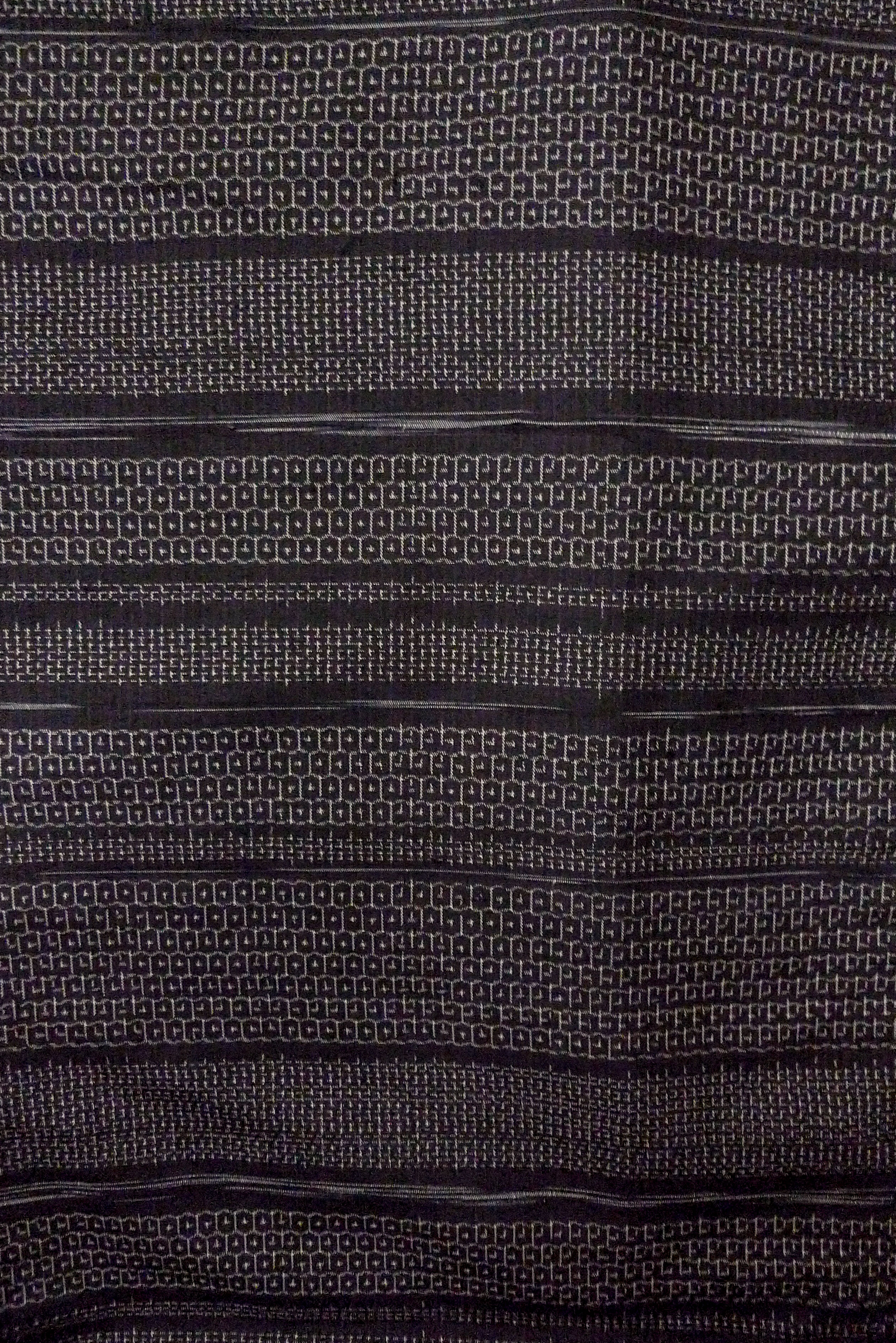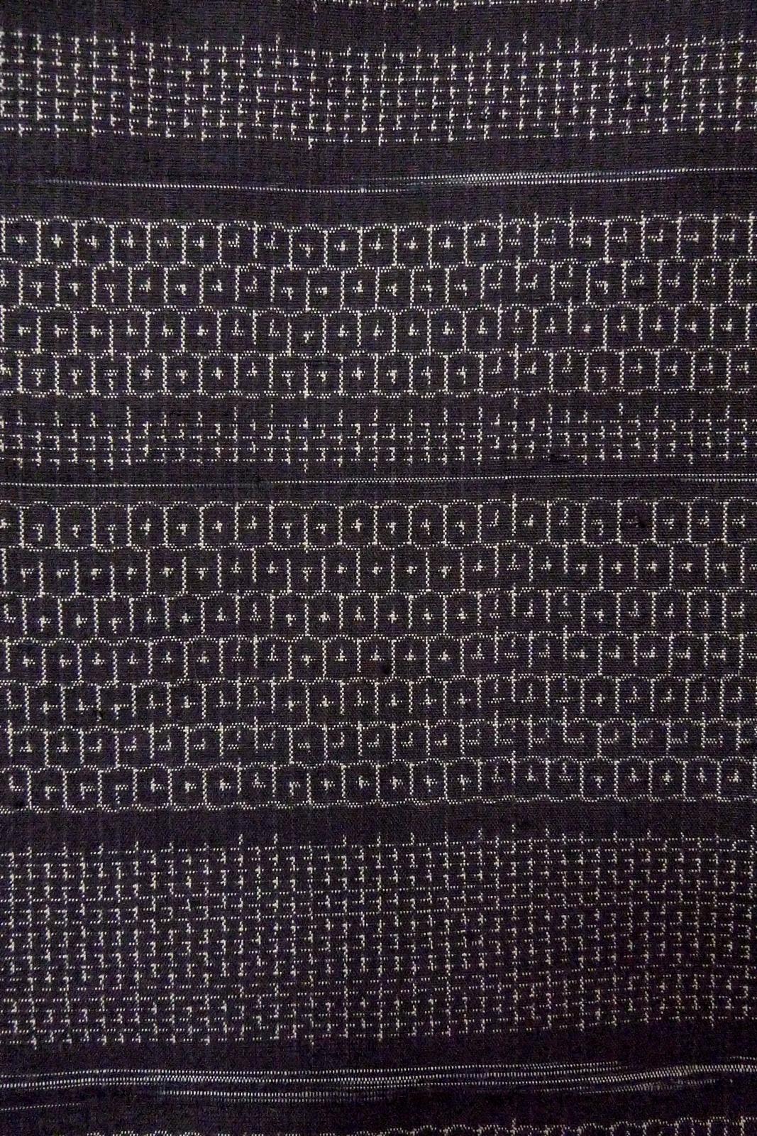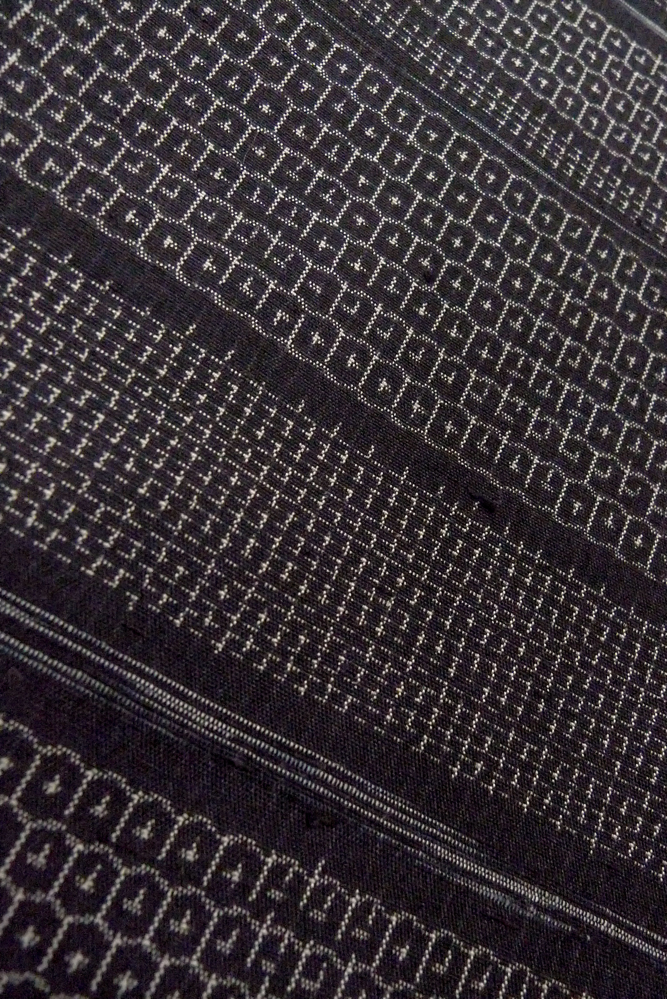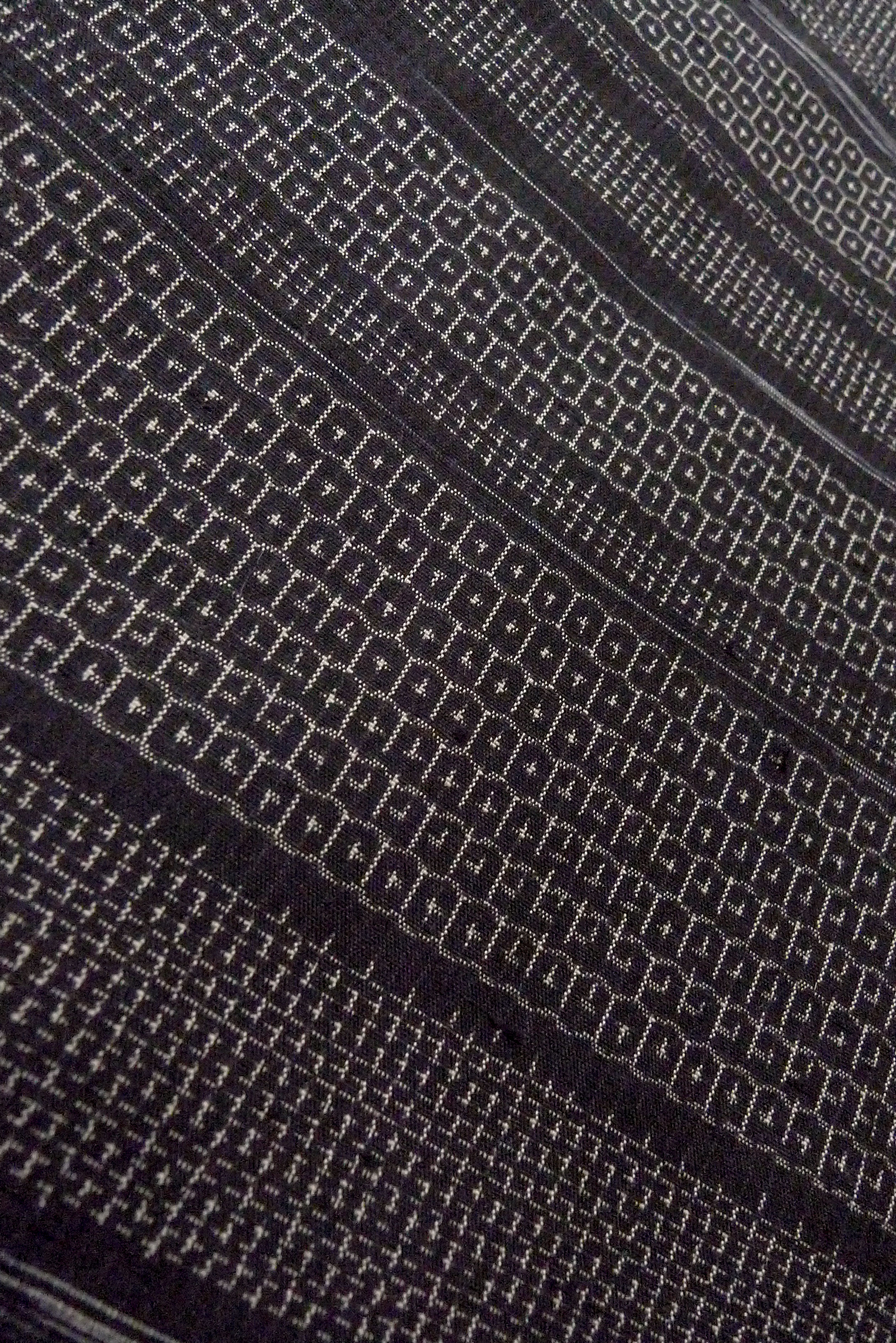 O0711T Used Japanese kimono Black TSUMUGI pongee for women / Silk. Tortoise-shell pattern(Hexagonal pattern), (Grade A)