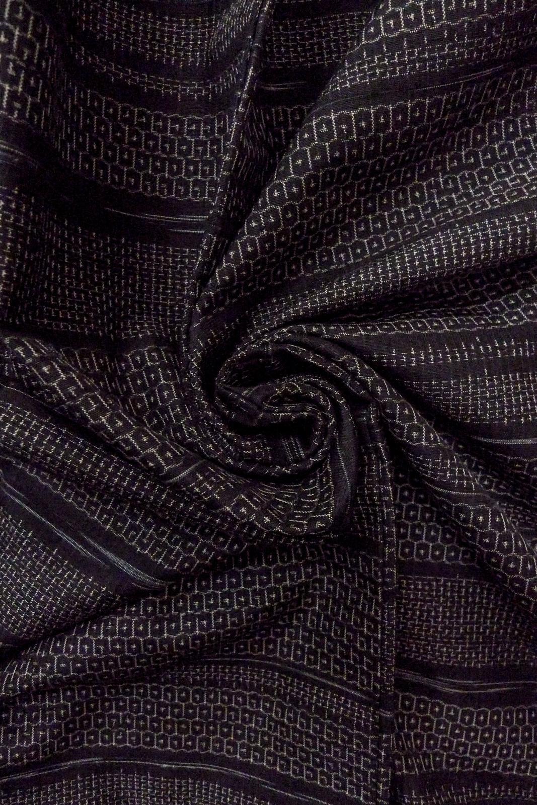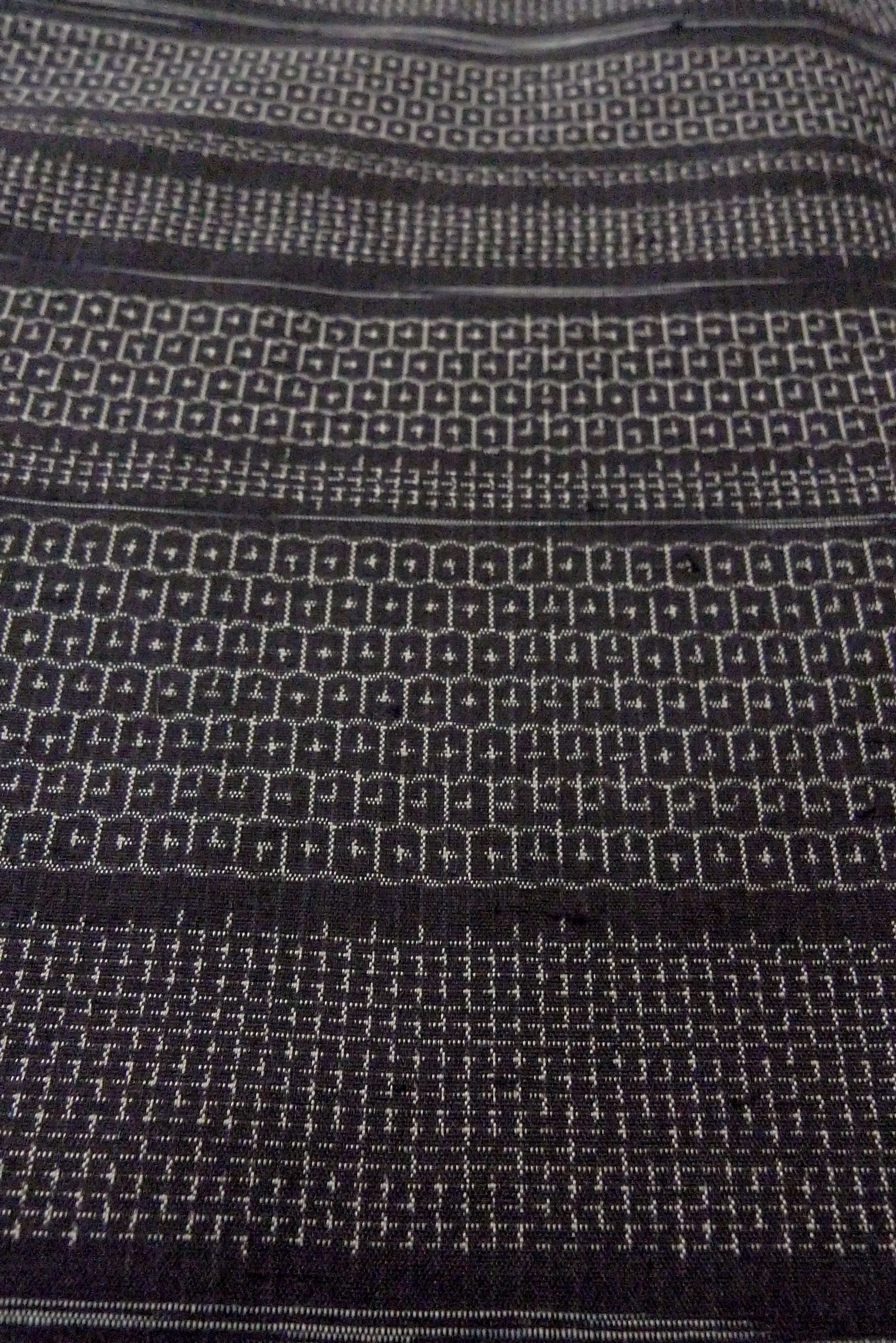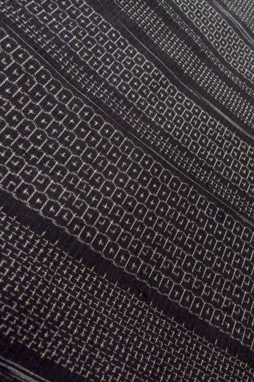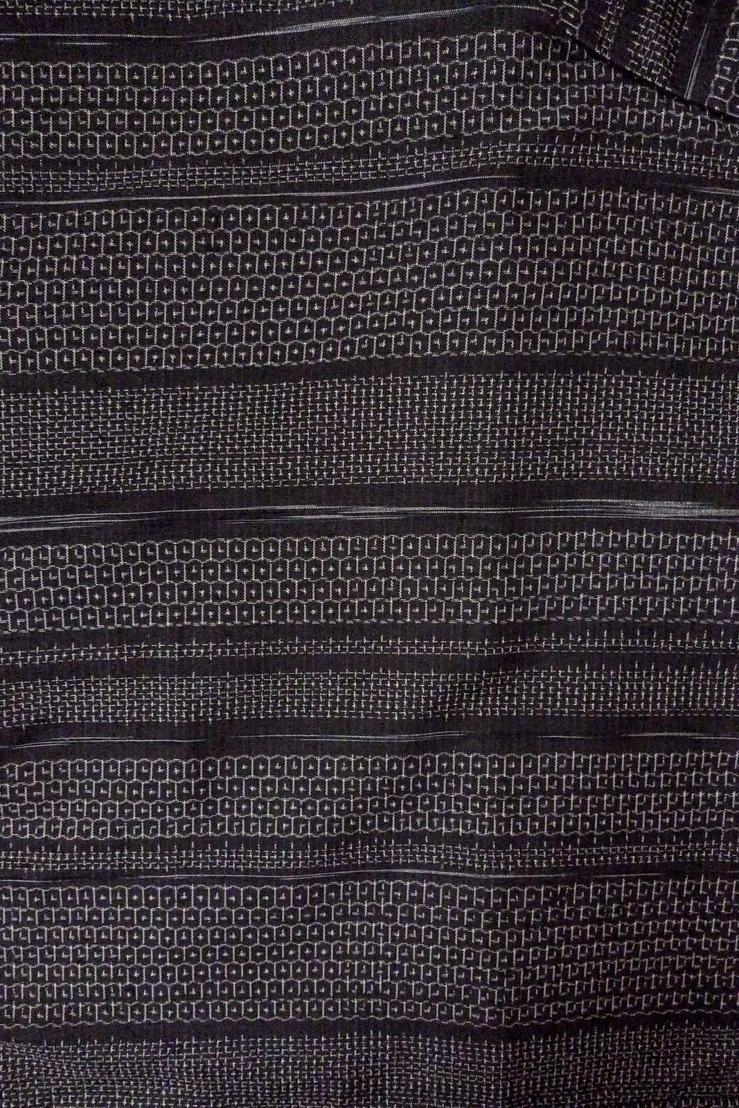 O0711T Used Japanese kimono Black TSUMUGI pongee for women / Silk. Tortoise-shell pattern(Hexagonal pattern), (Grade A) [O0711T]