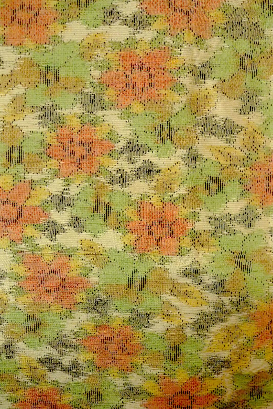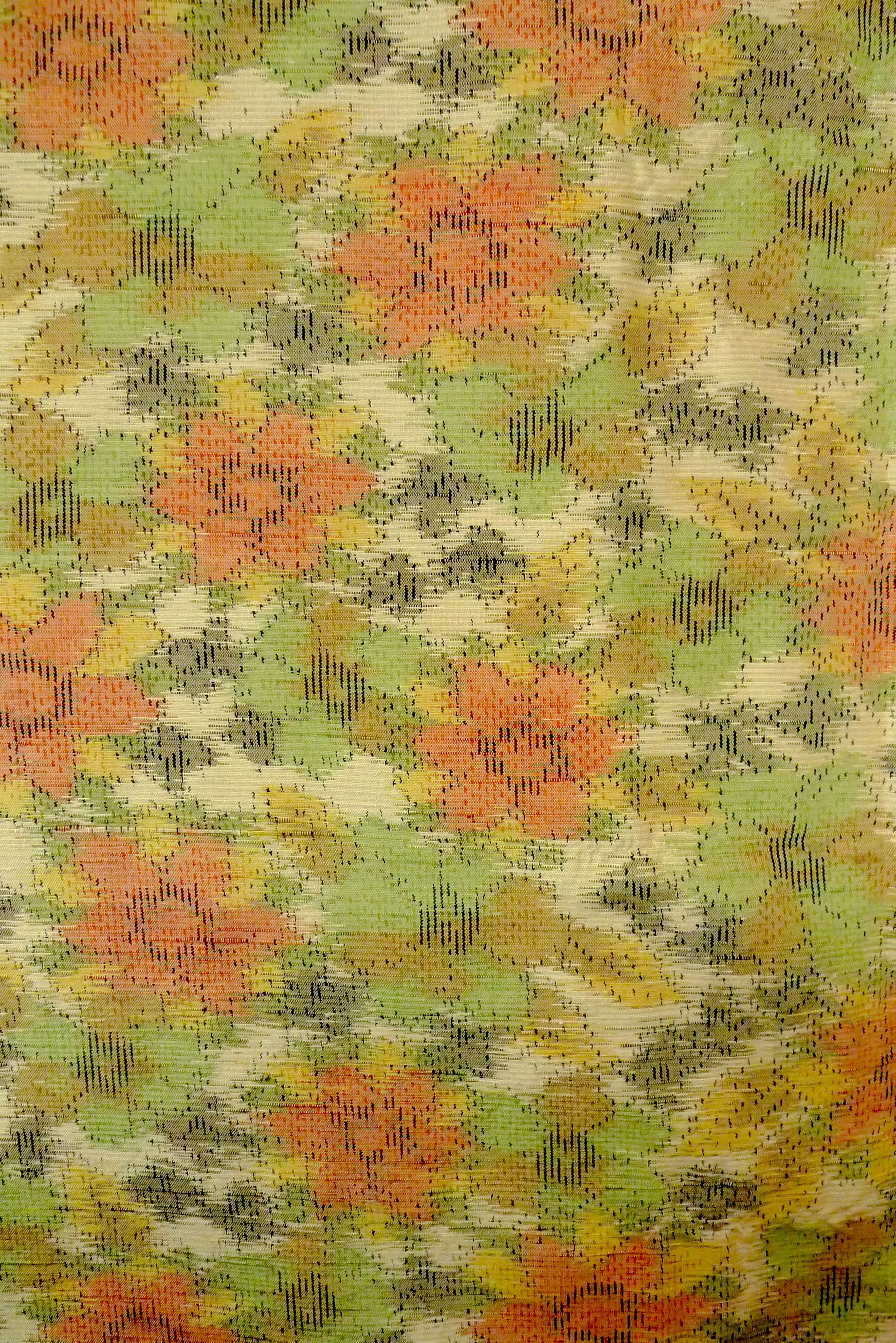 O0711Y Used Japanese kimono Pale Off White TOKAMACHI-TSUMUGI for women / Silk. Flower (Grade A) [O0711Y]