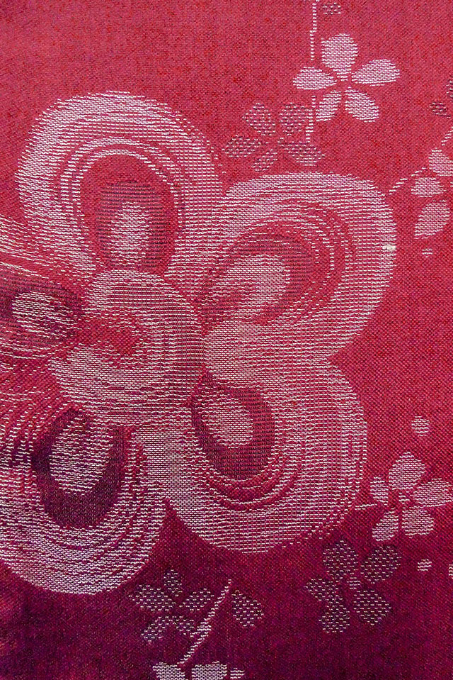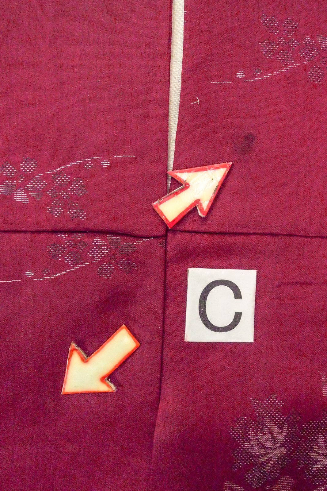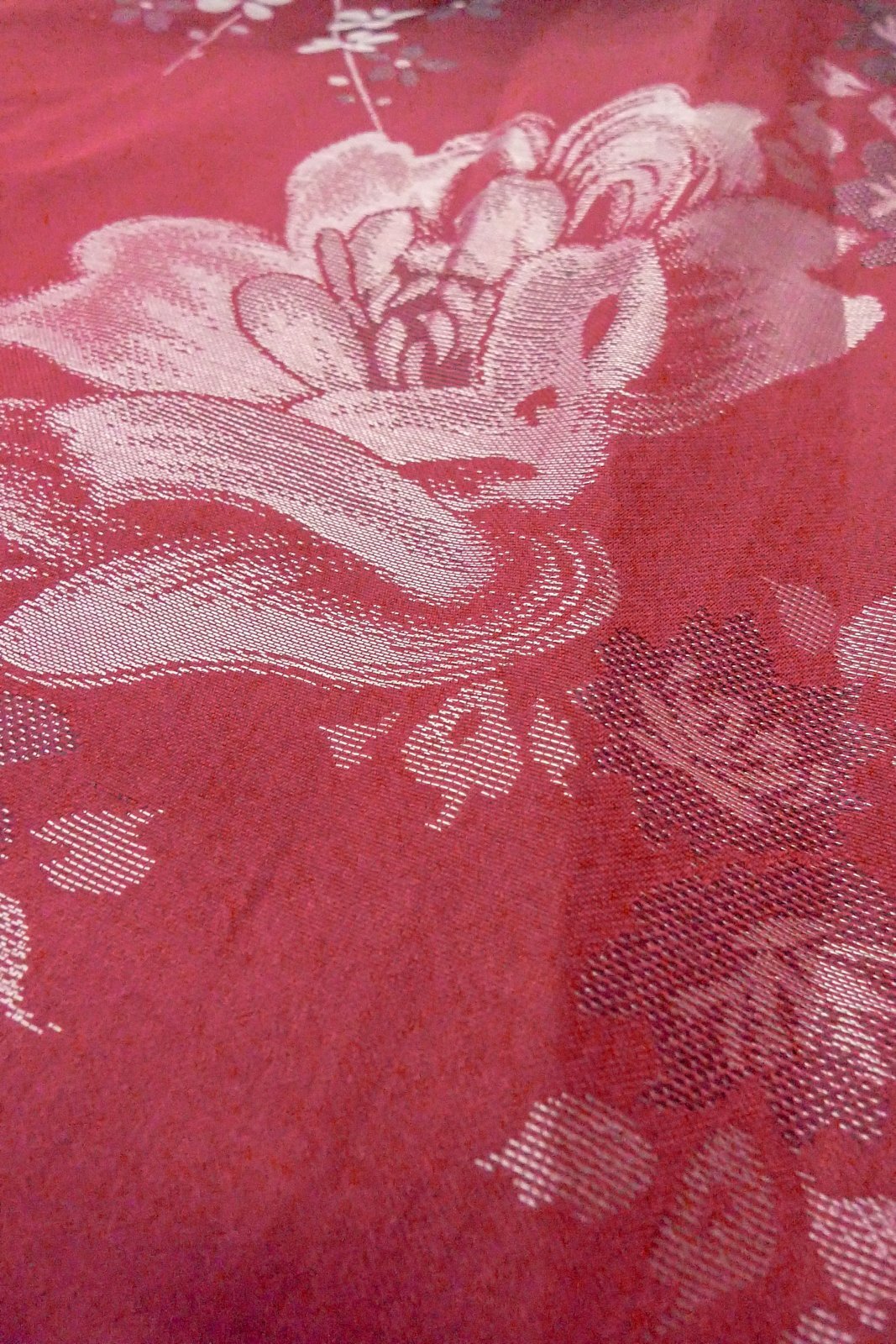 O0712C Antique Japanese kimono Dark Red ORI woven for women / Silk. Flower, (Grade C) [O0712C]