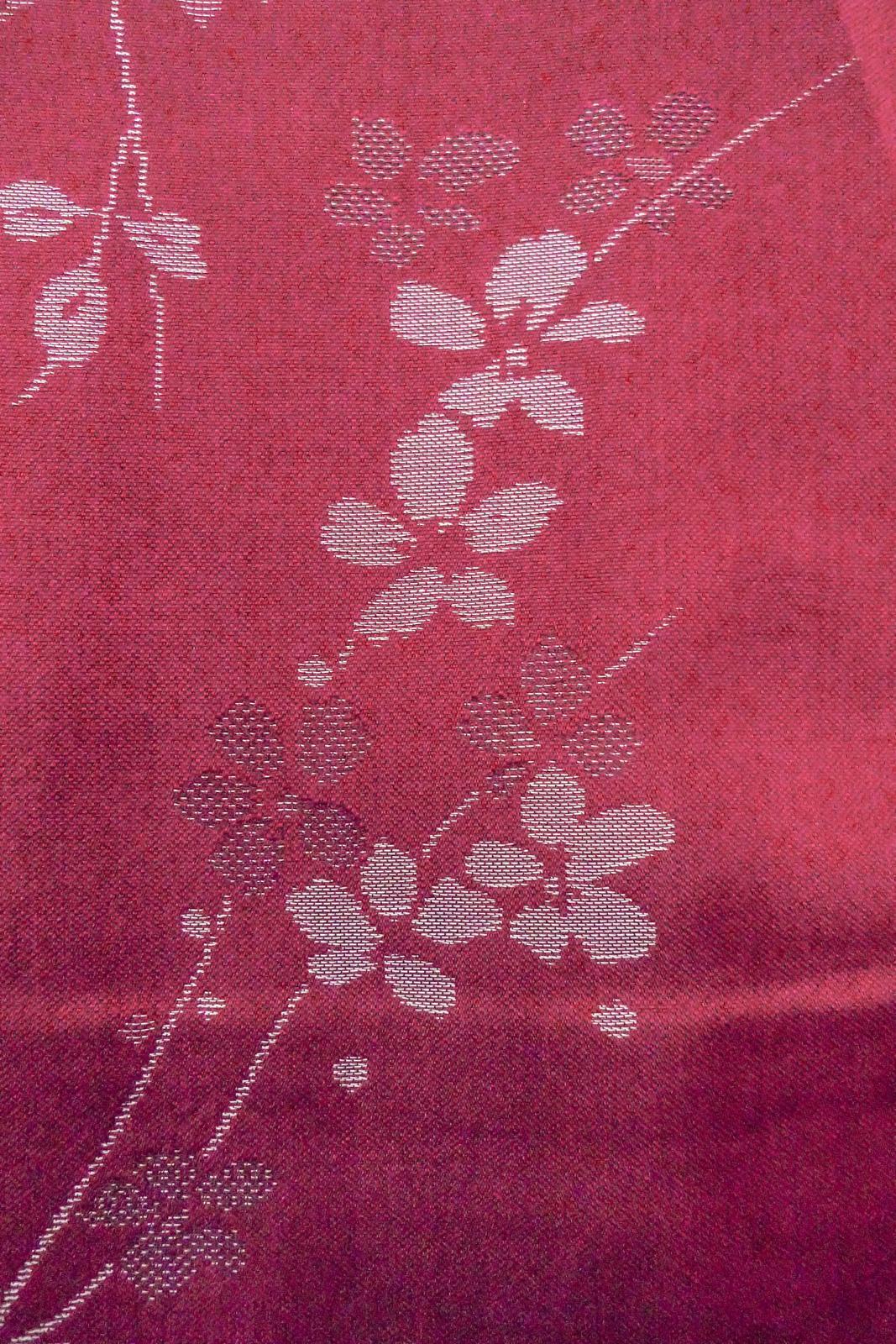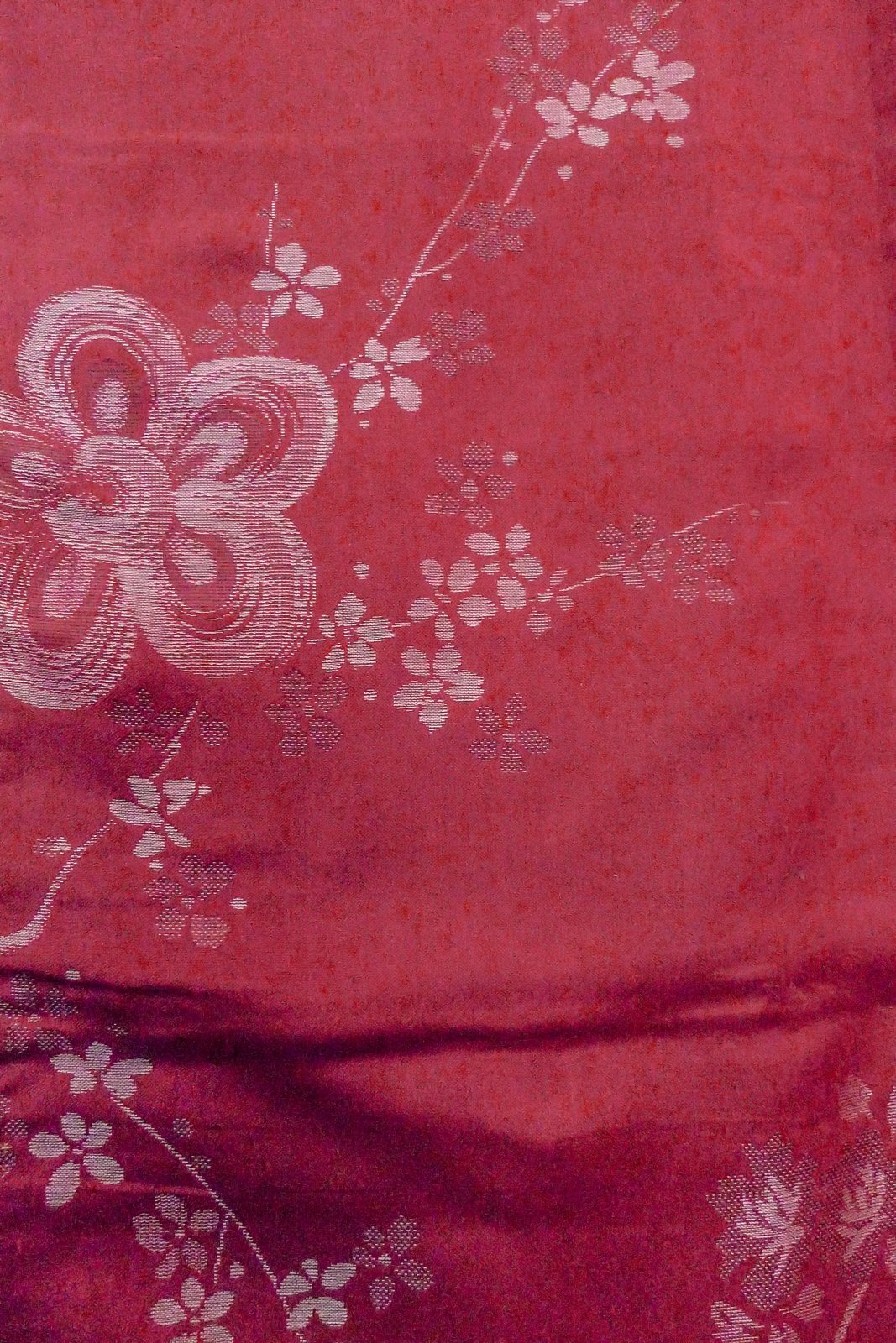 O0712C Antique Japanese kimono Dark Red ORI woven for women / Silk. Flower, (Grade C)