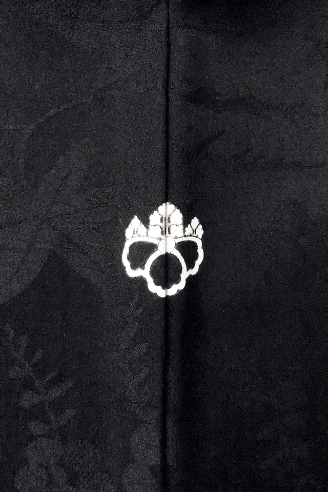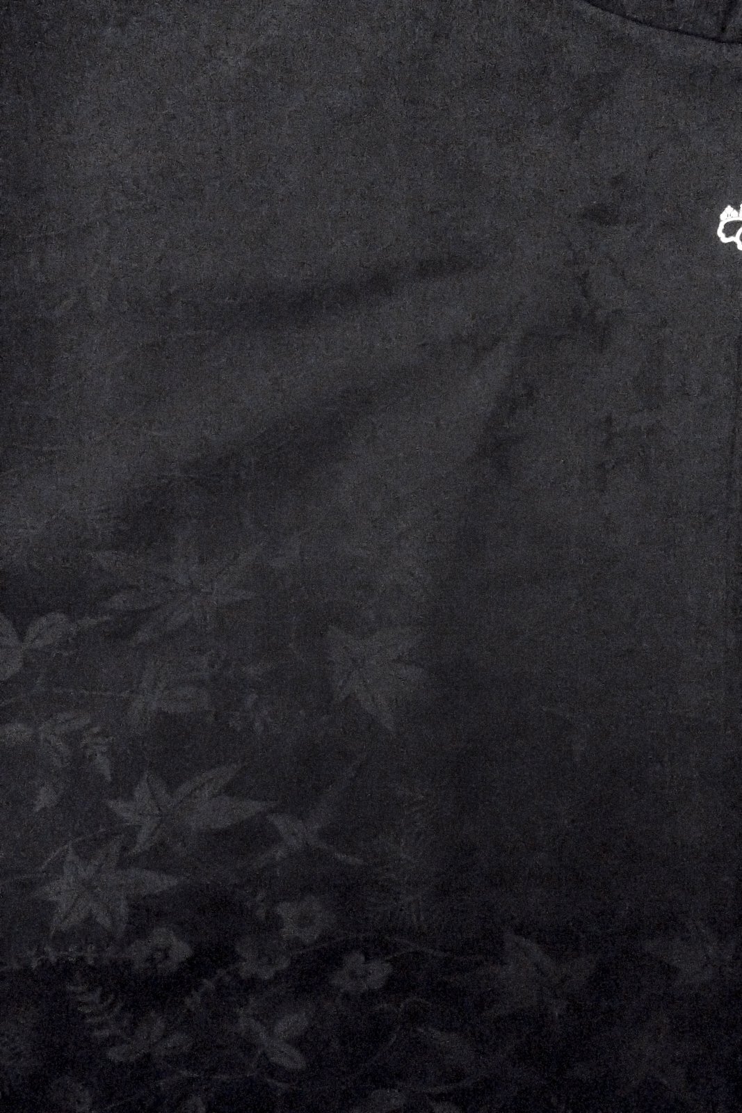O0902J Vintage Japanese kimono Black HAORI short jacket for women / Silk. Leaf, (Grade B)