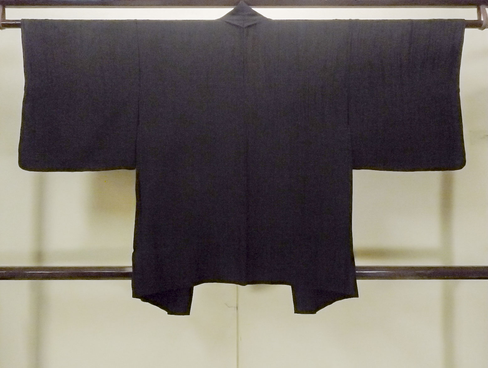 O0902P Vintage Japanese kimono Black HAORI short jacket for women / Silk. (Grade B)
