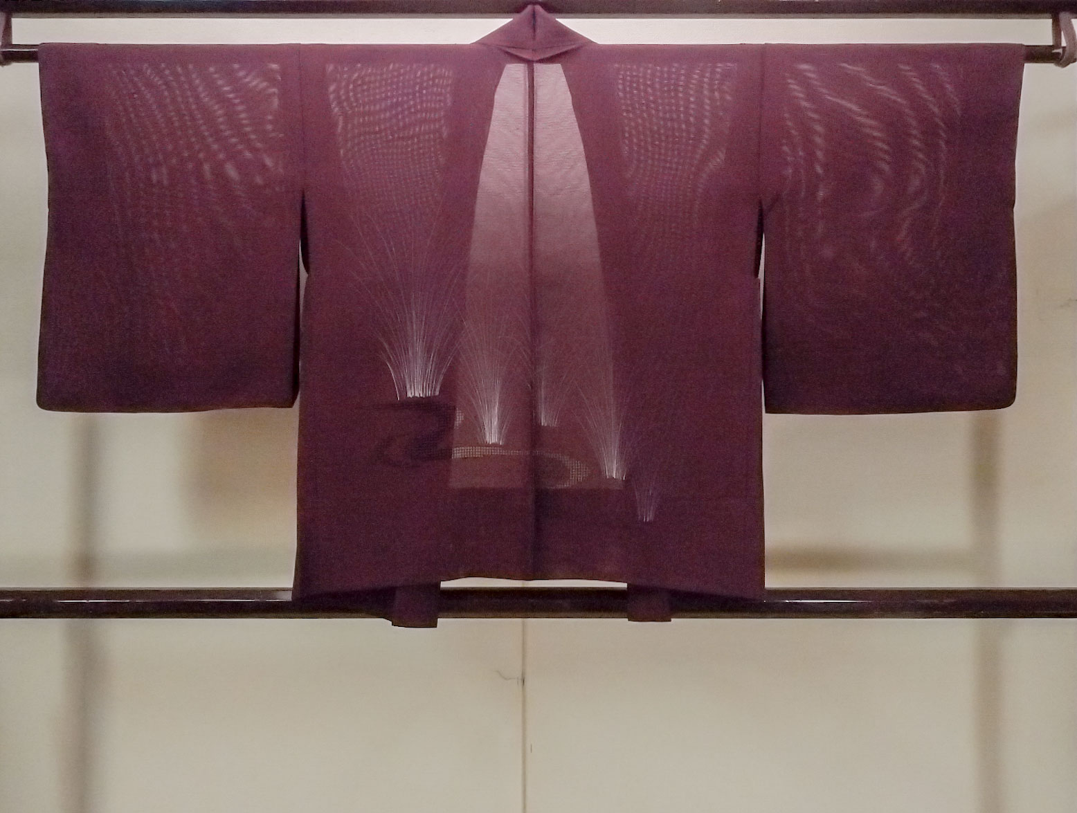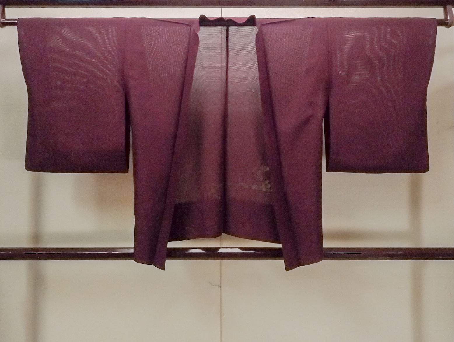 O0903D Vintage Japanese kimono Dark Purple HAORI short jacket for women / Silk. Stream, (Grade D)