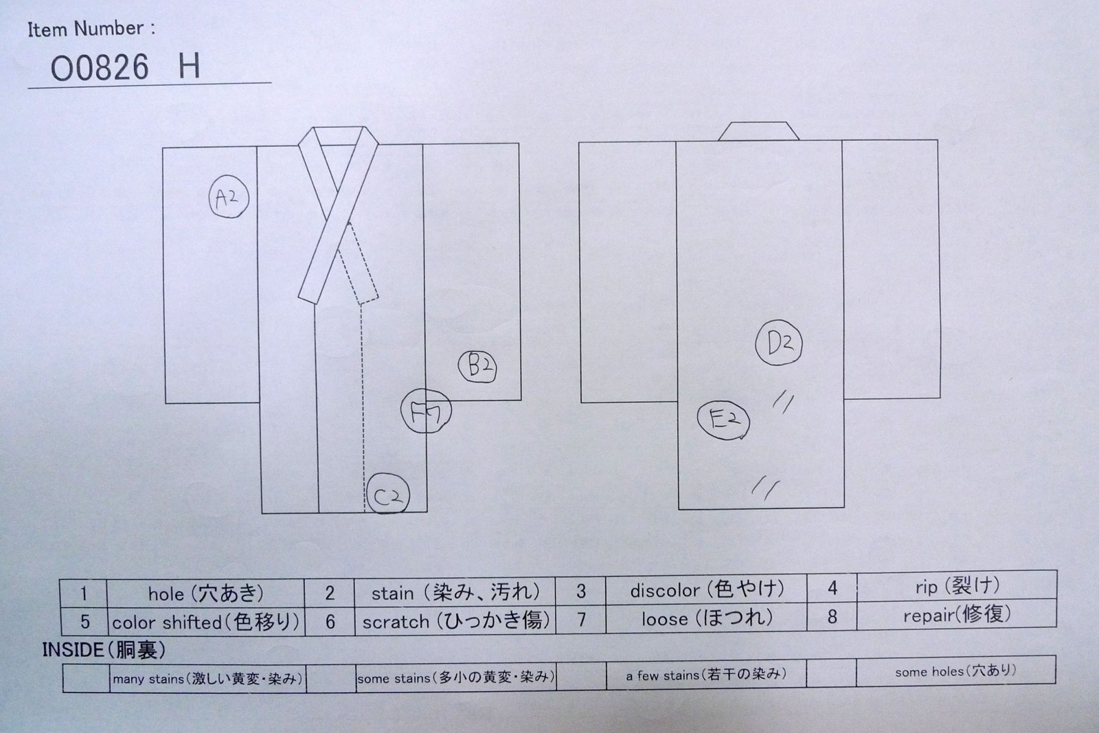 | condition: | (Grade D) | lower lining (HAKKAKE) : | ||