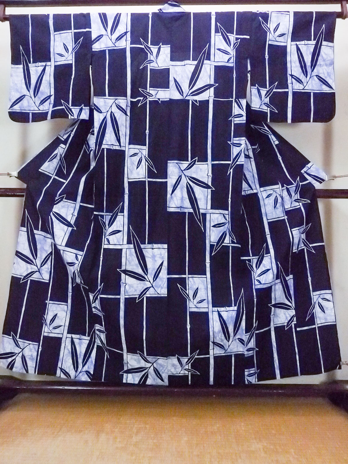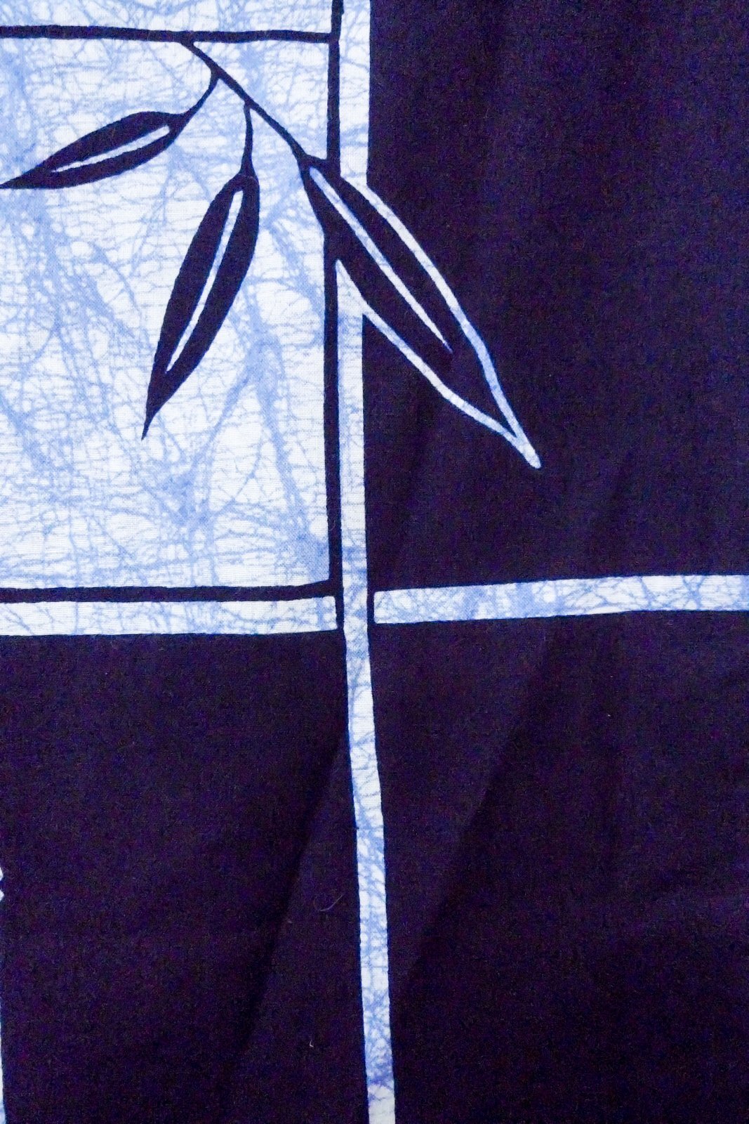 - > O0826P Vintage Japanese kimono Dark Indigo Blue YUKATA summer(made in Japan) for women / Cotton. Bamboo leaf, (Grade B)