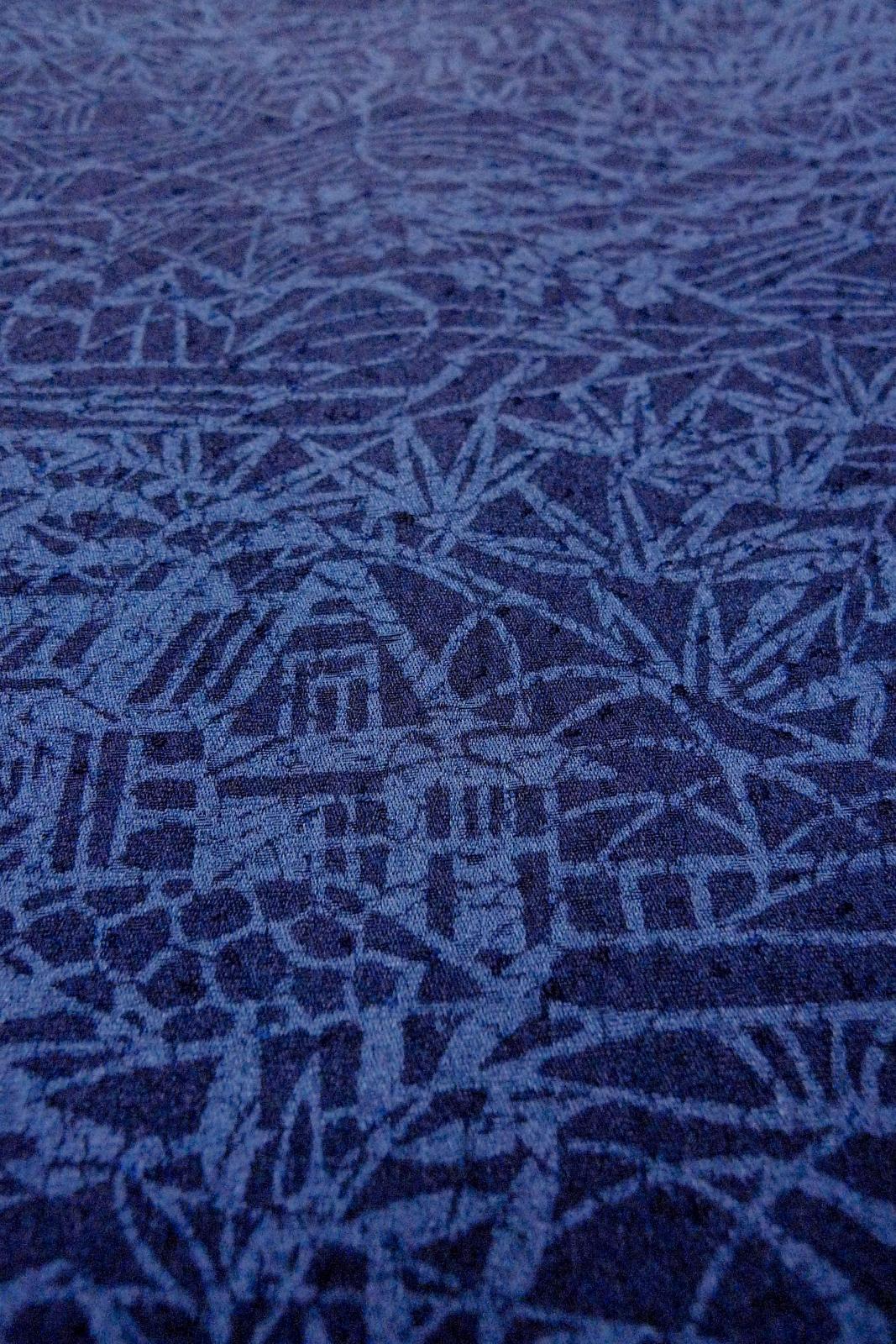 O0826S Vintage Japanese kimono Indigo Blue KOMON dyed for women / Silk. Bamboo leaf, (Grade B)