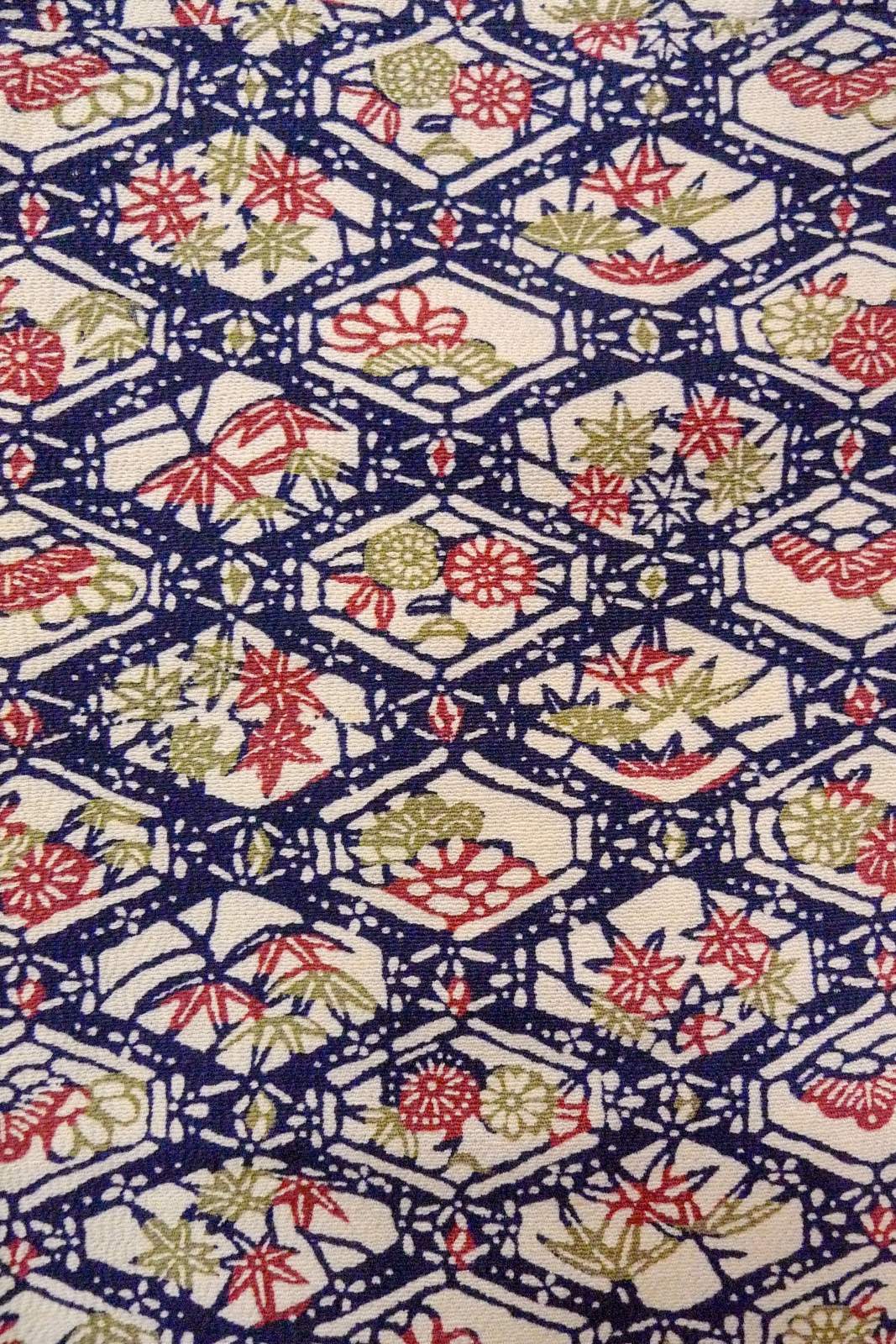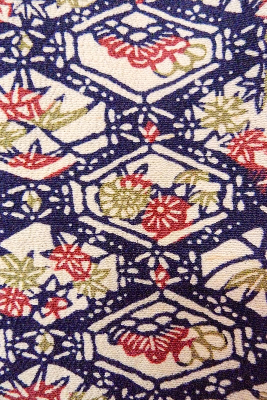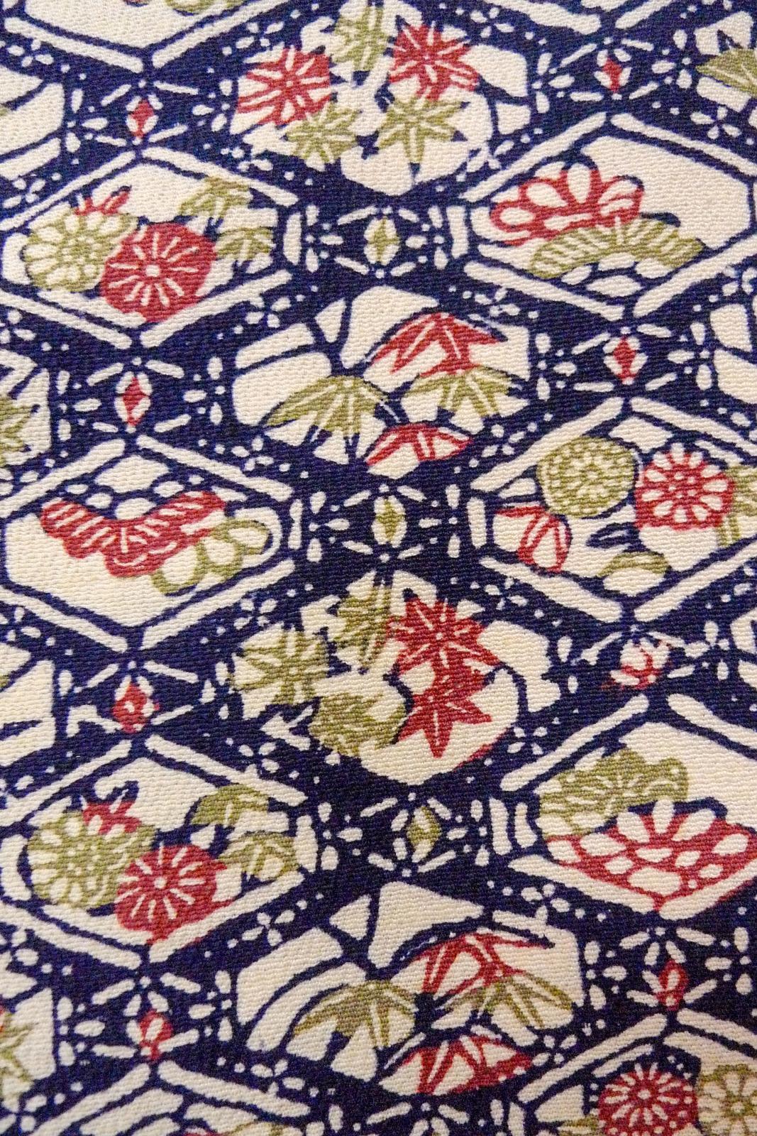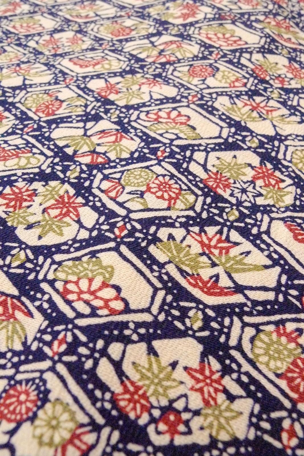 O0826T Vintage Japanese kimono Dark Multi Color KOMON dyed for women / Silk. Flower, There are stains on the lining (Grade C)