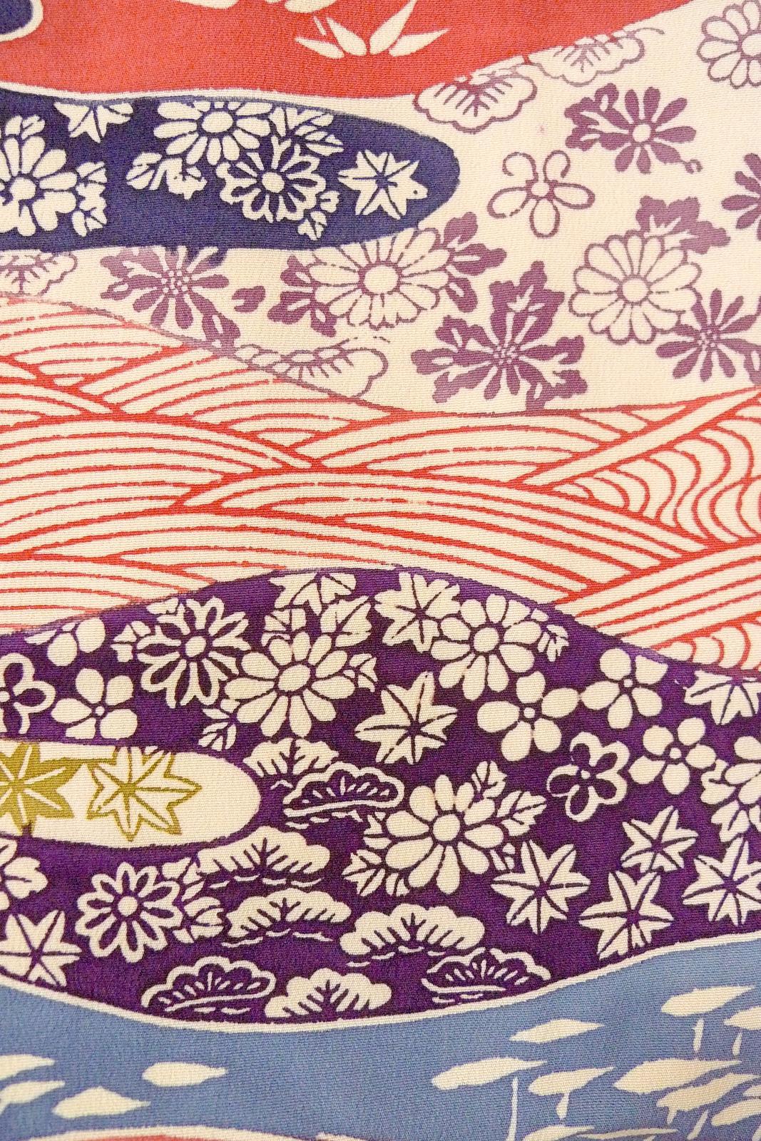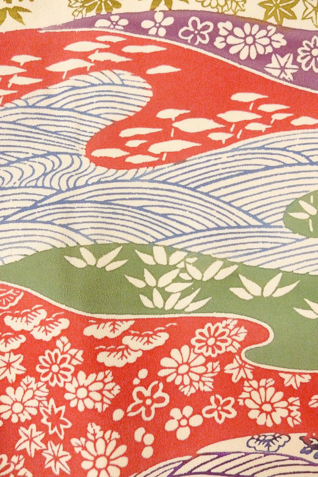 O0826U Vintage Japanese kimono Multi Color KOMON dyed for women / Silk. Chrysanthemum, (Grade B)