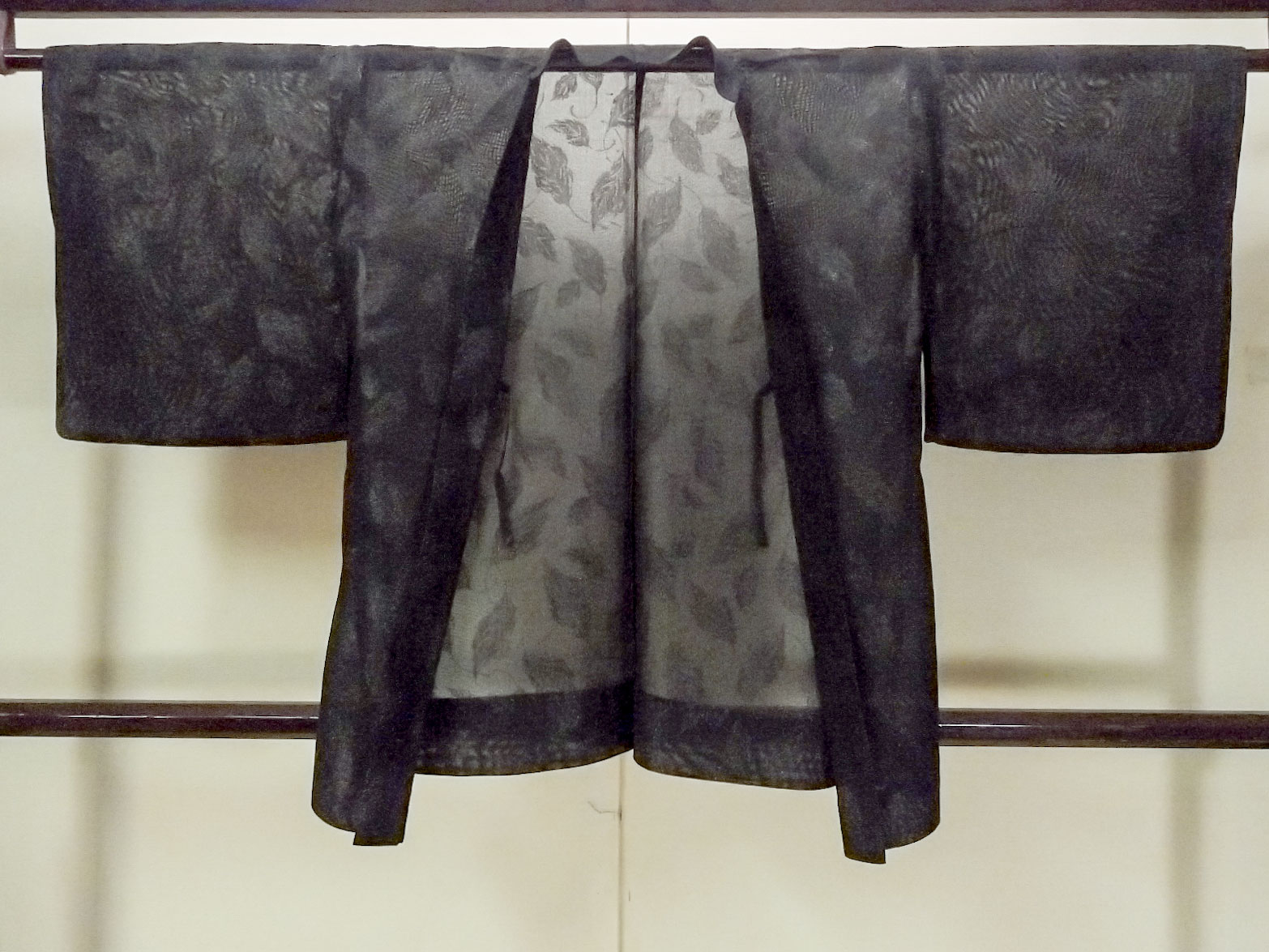 Mint O0909F Vintage Japanese kimono Black HAORI short jacket for women / Silk. Leaf (Grade A) [O0909F]