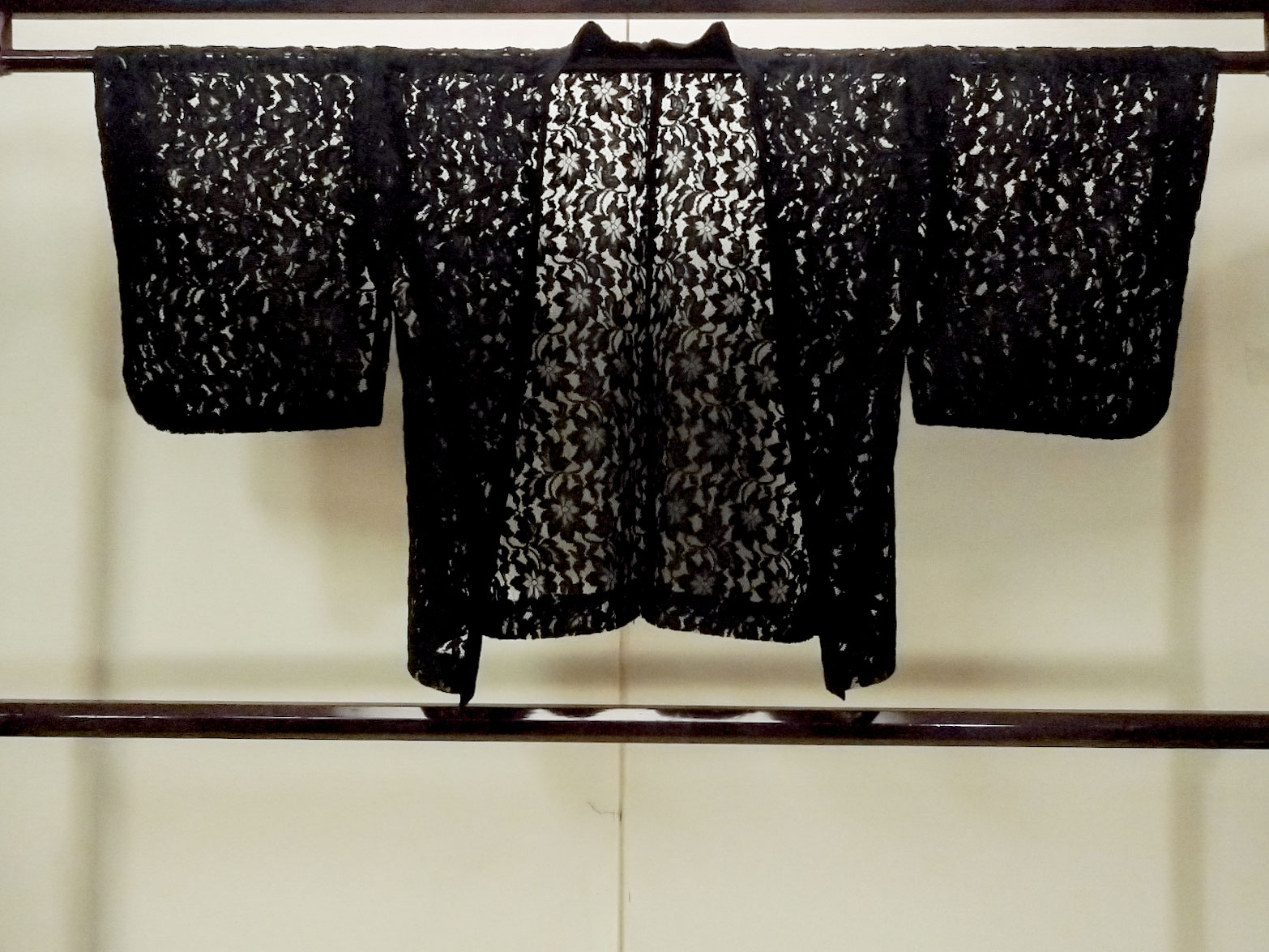 Mint O0909M Vintage Japanese kimono Black HAORI short jacket for women / Synthetic. Flower, Lace fabric (Grade A) [O0909M]