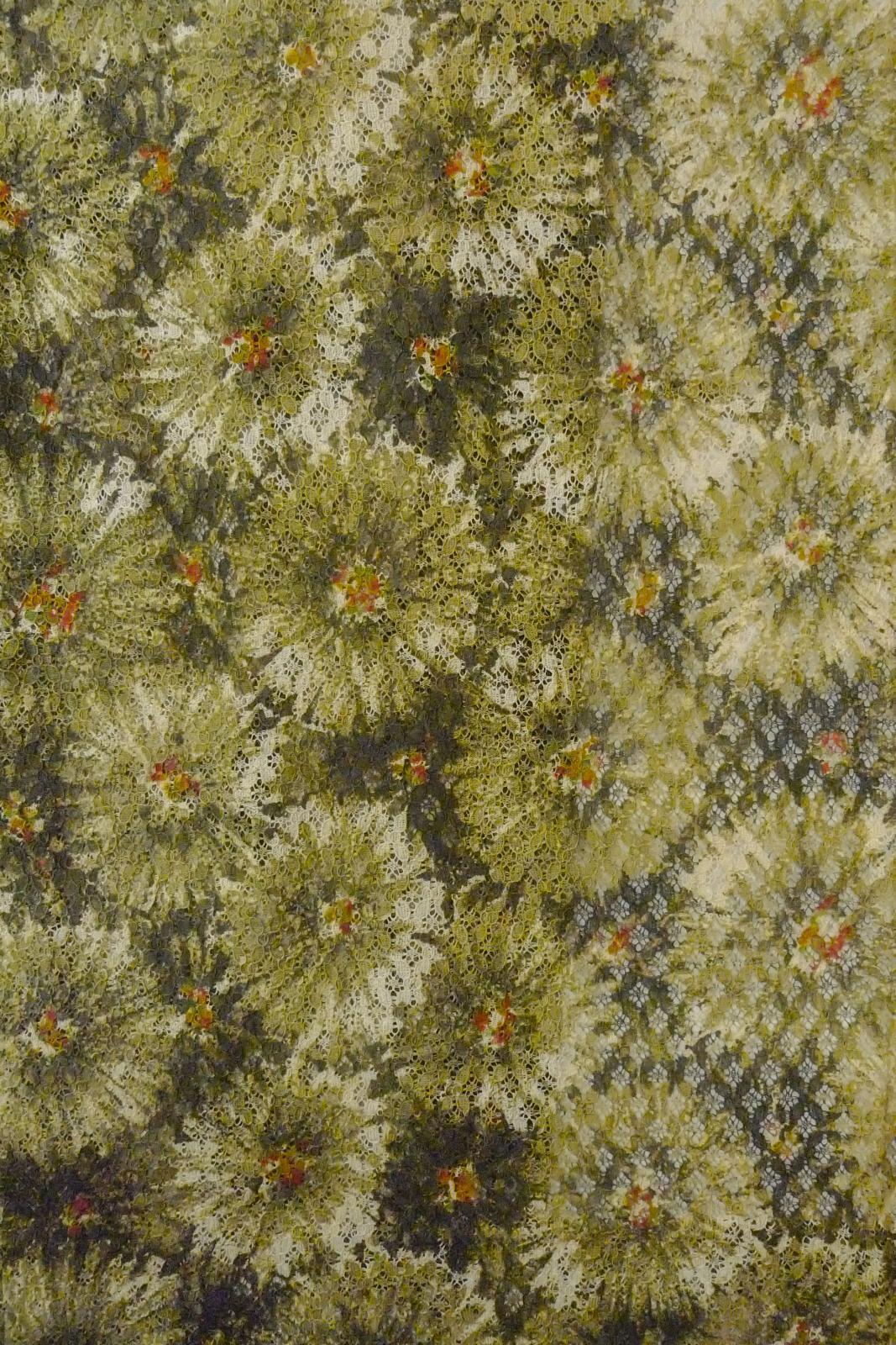 O0909P Vintage Japanese kimono Dark Olive HAORI short jacket for women / Synthetic. Flower (Grade B) [O0909P]