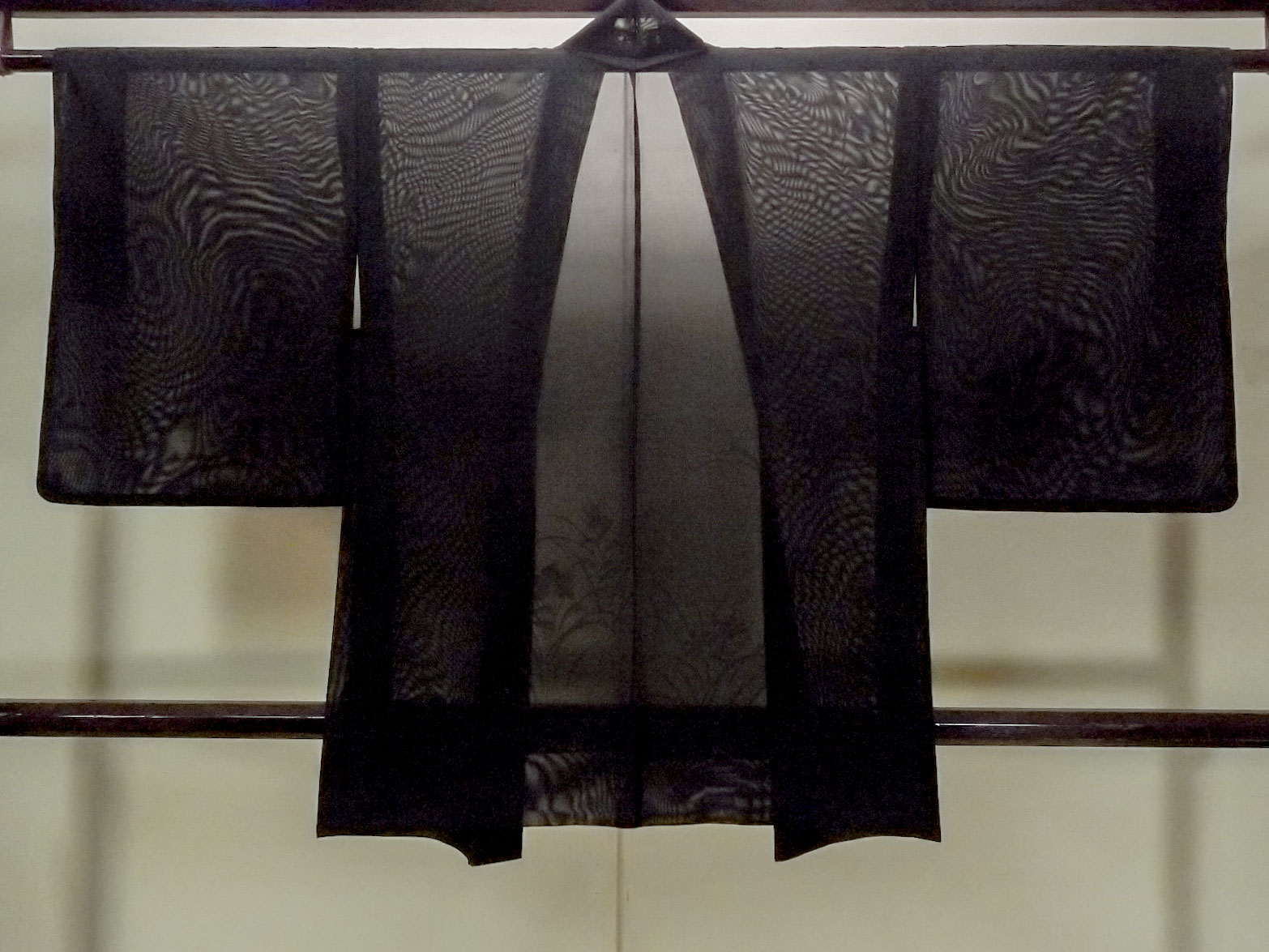 O0909W Vintage Japanese kimono Black HAORI short jacket for women / Silk. Flower, (Grade B)