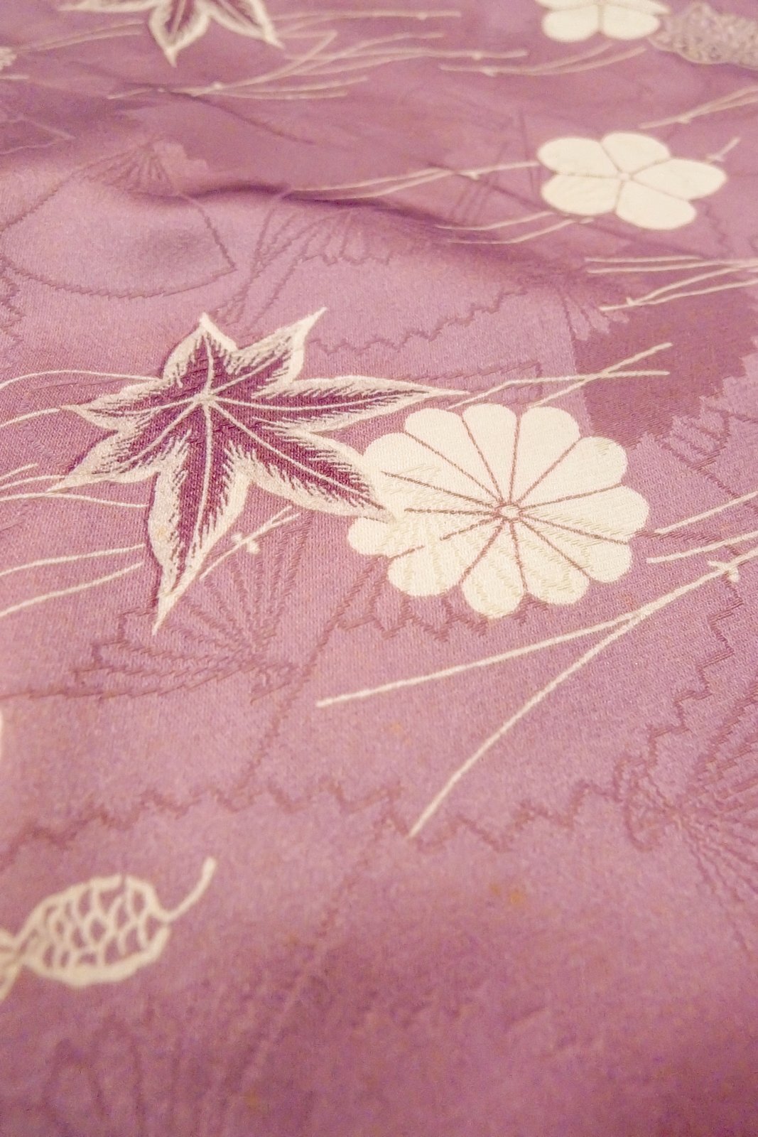 O1002D Vintage Japanese kimono Wisteria KOMON dyed for women / Synthetic. Chrysanthemum (Grade C)