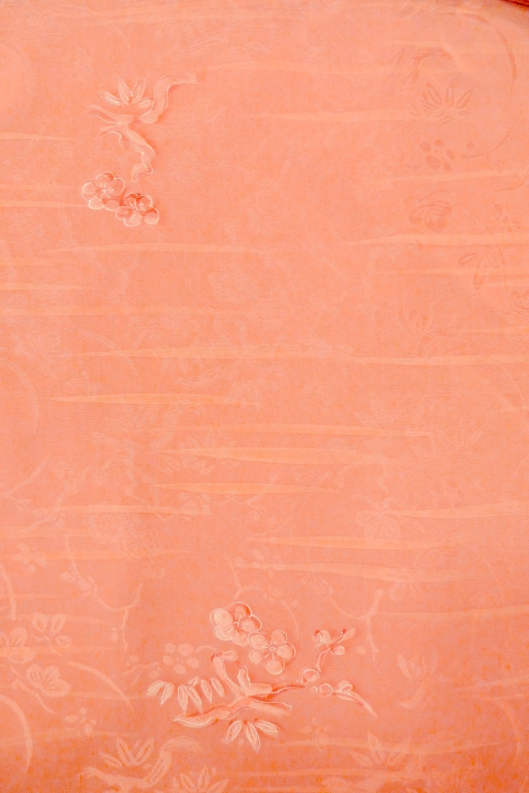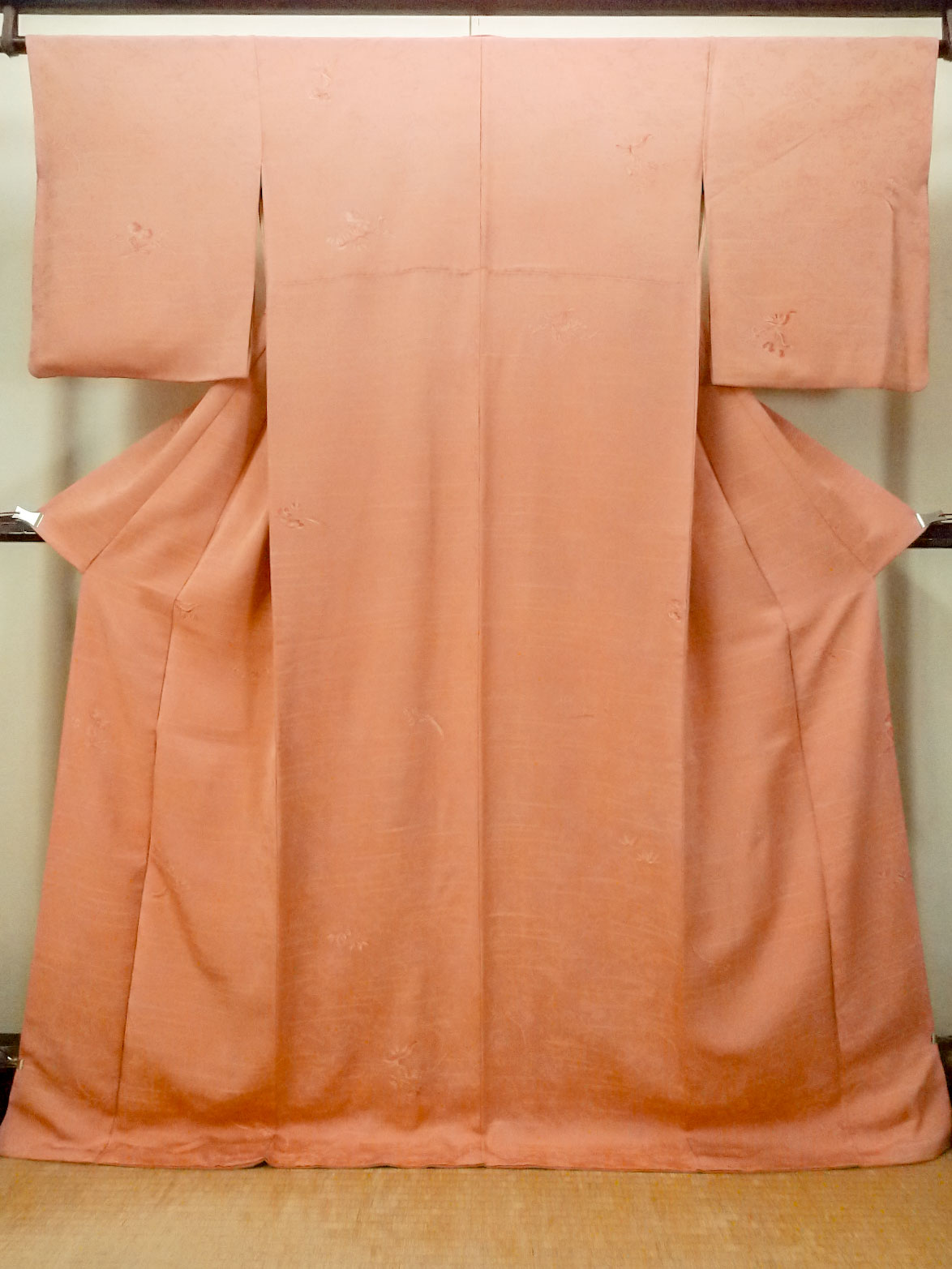 Mint O1002F Vintage Japanese kimono Coral IROMUJI plain colored for women / Silk. UME plum bloom (Grade A) [O1002F]
