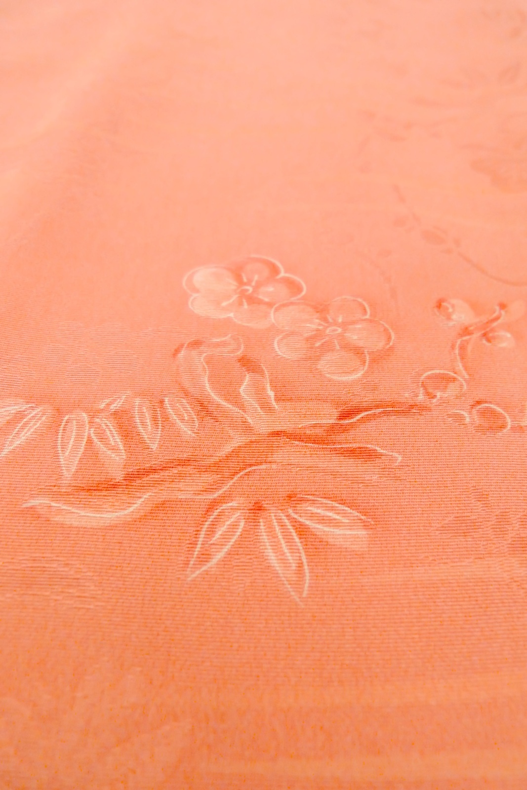 Mint O1002F Vintage Japanese kimono Coral IROMUJI plain colored for women / Silk. UME plum bloom (Grade A)