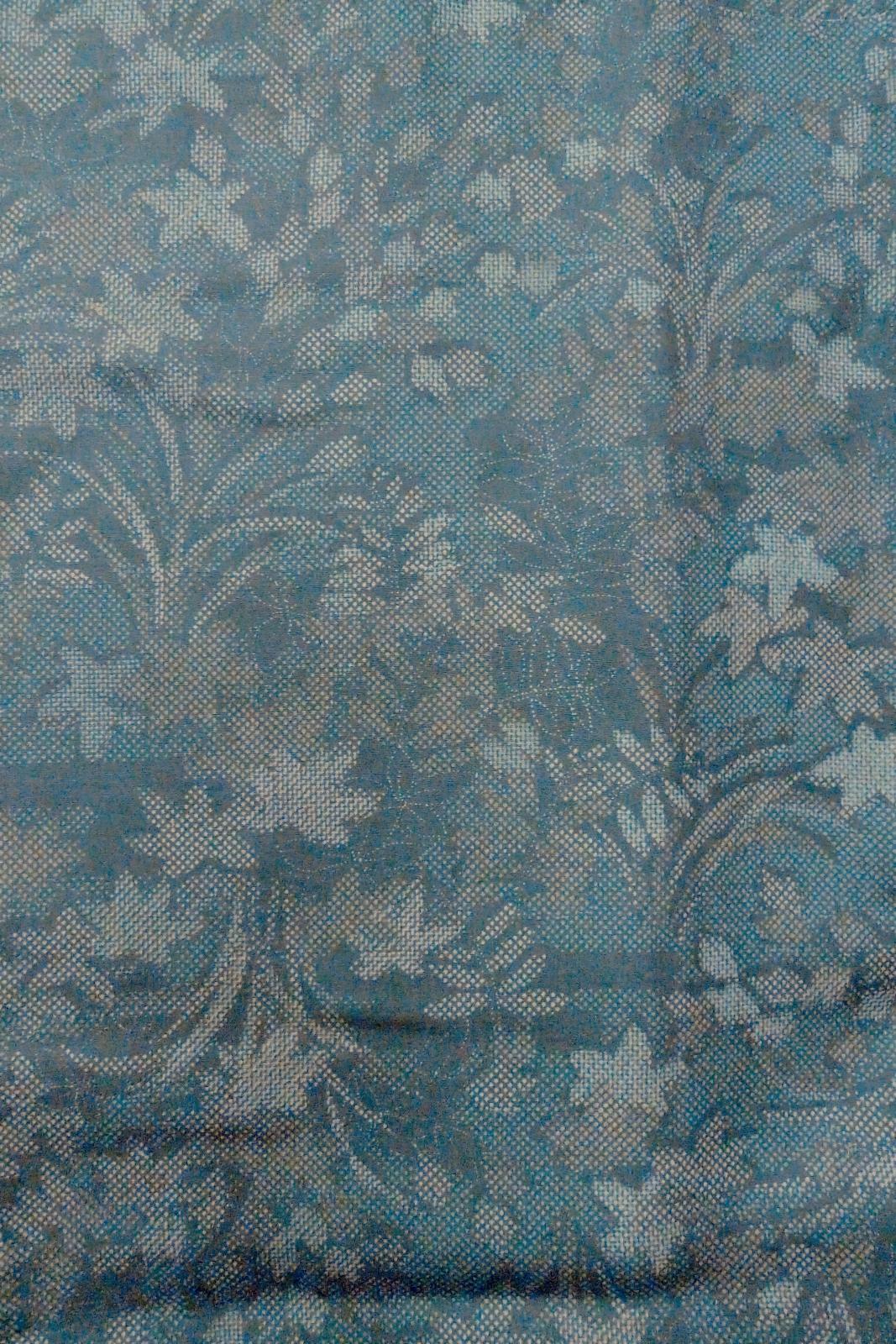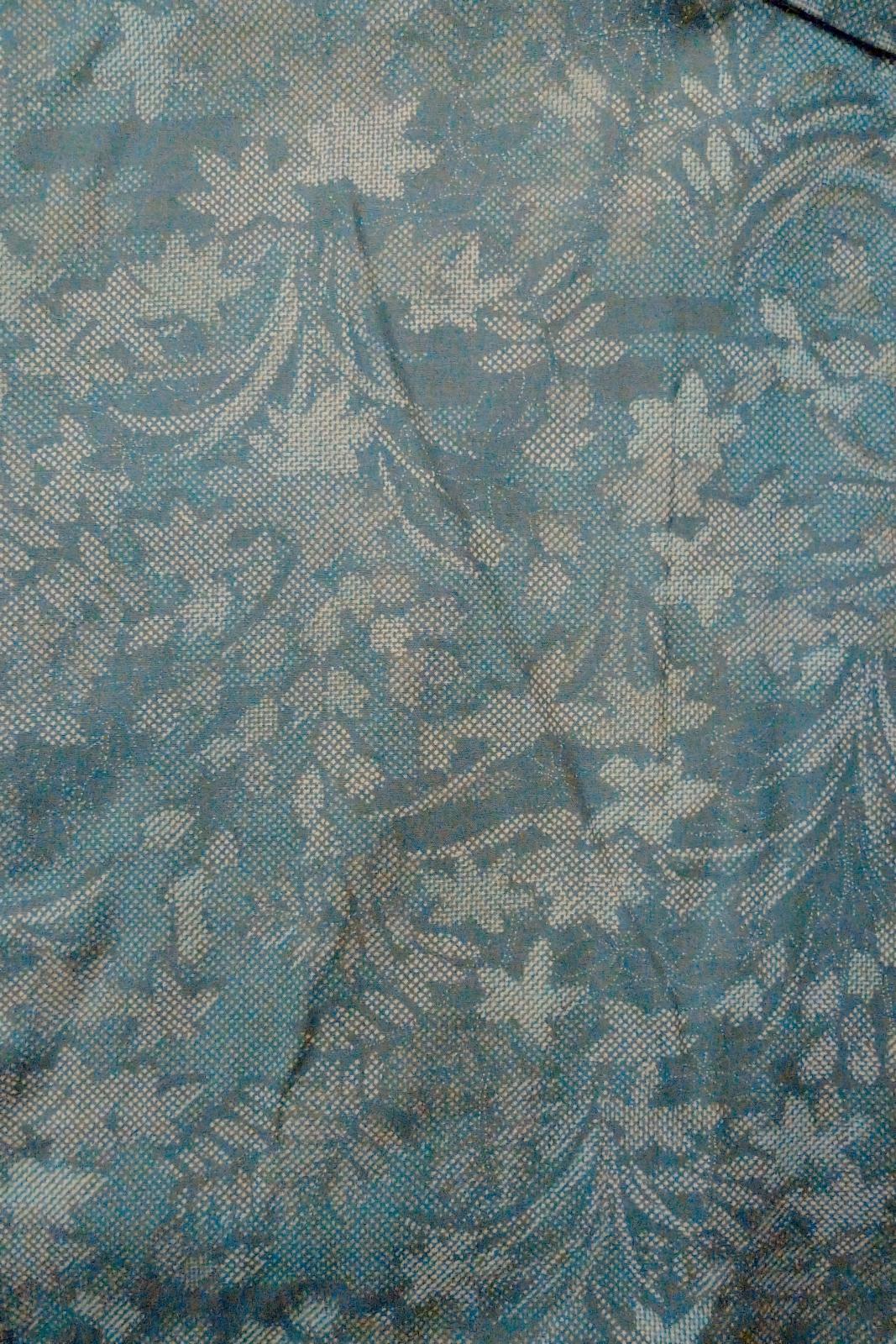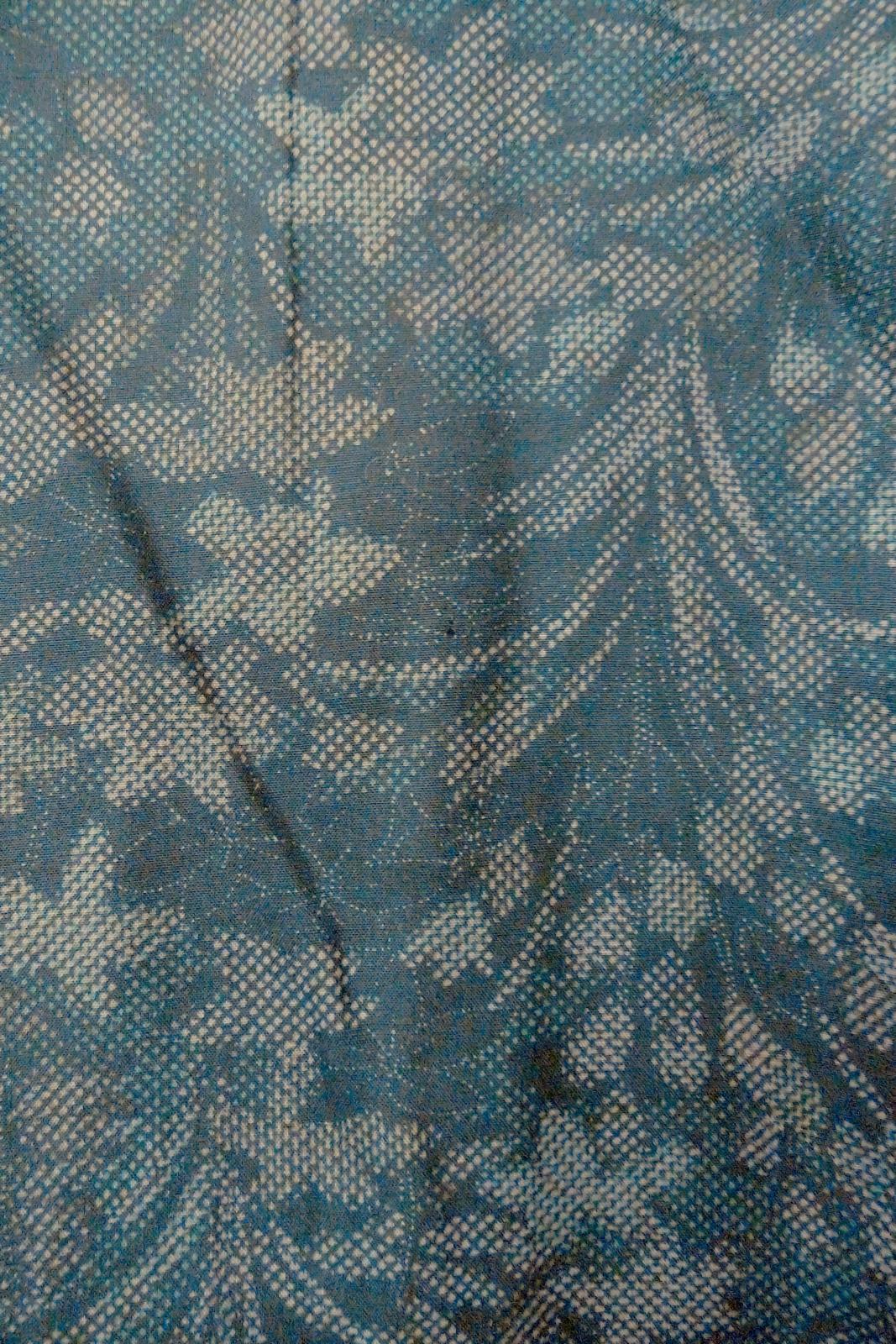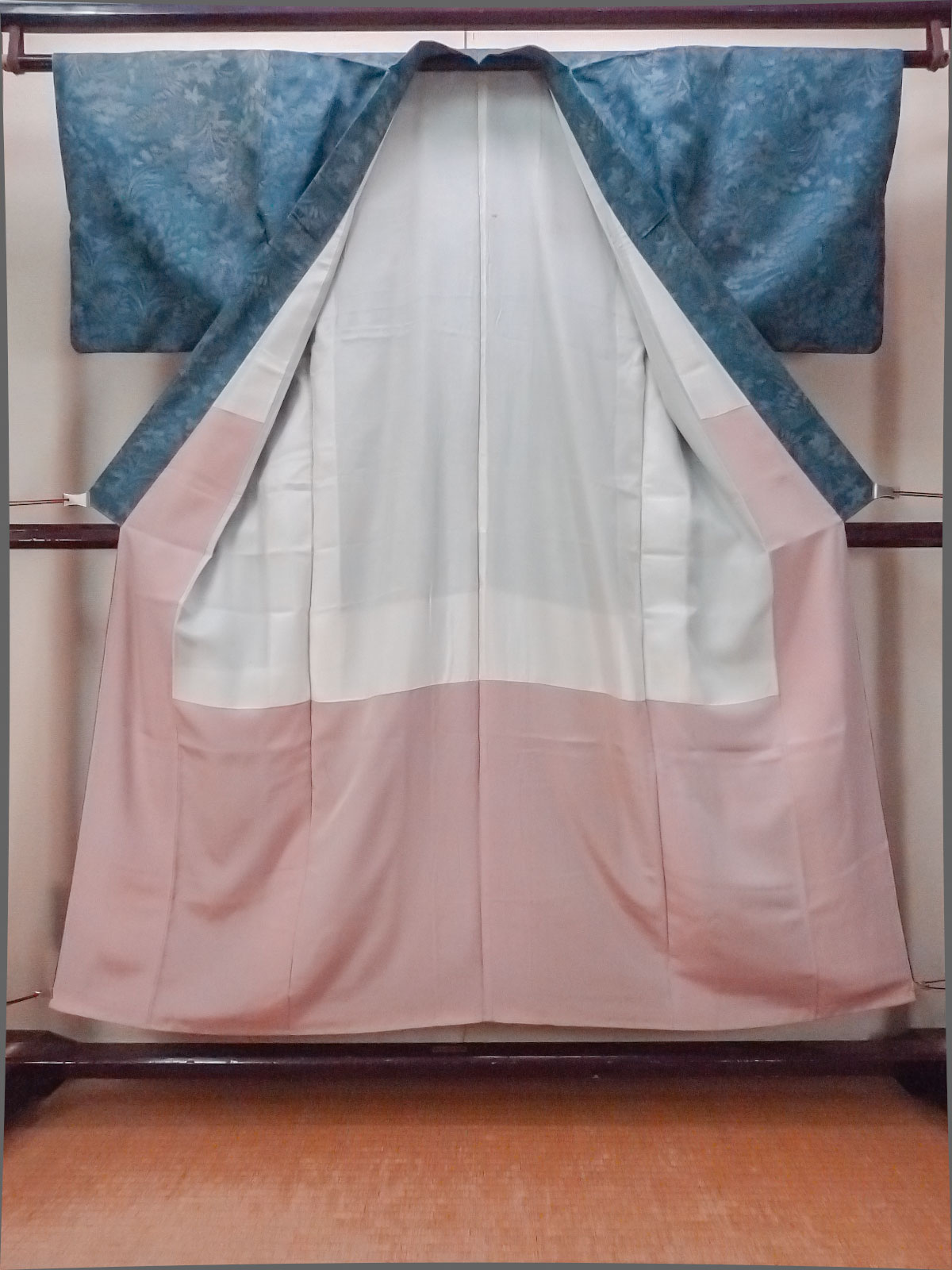 O1002J Vintage Japanese kimono Dark Grayish Light Blue TSUMUGI pongee for women / Silk. Flower (Grade D) [O1002J]