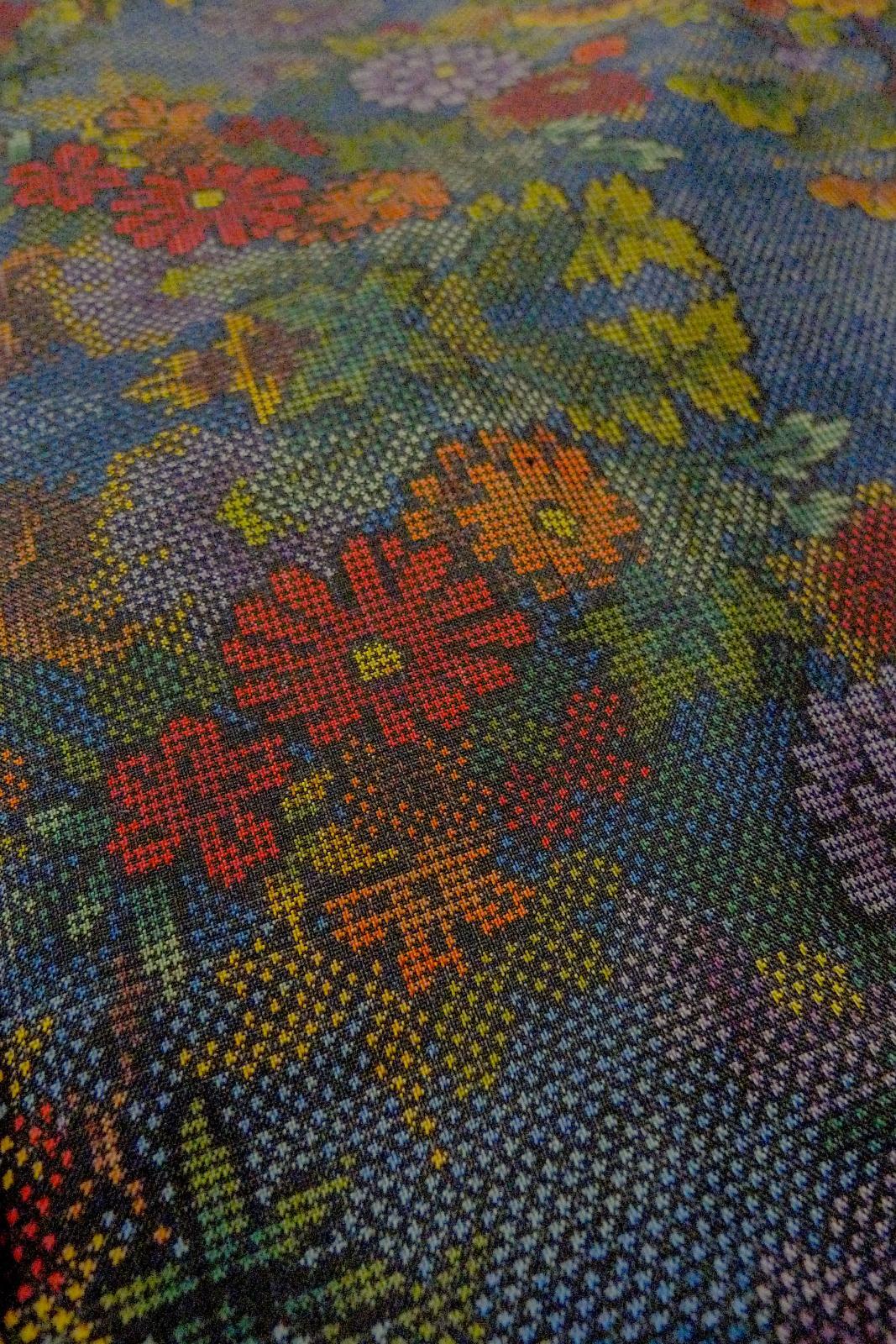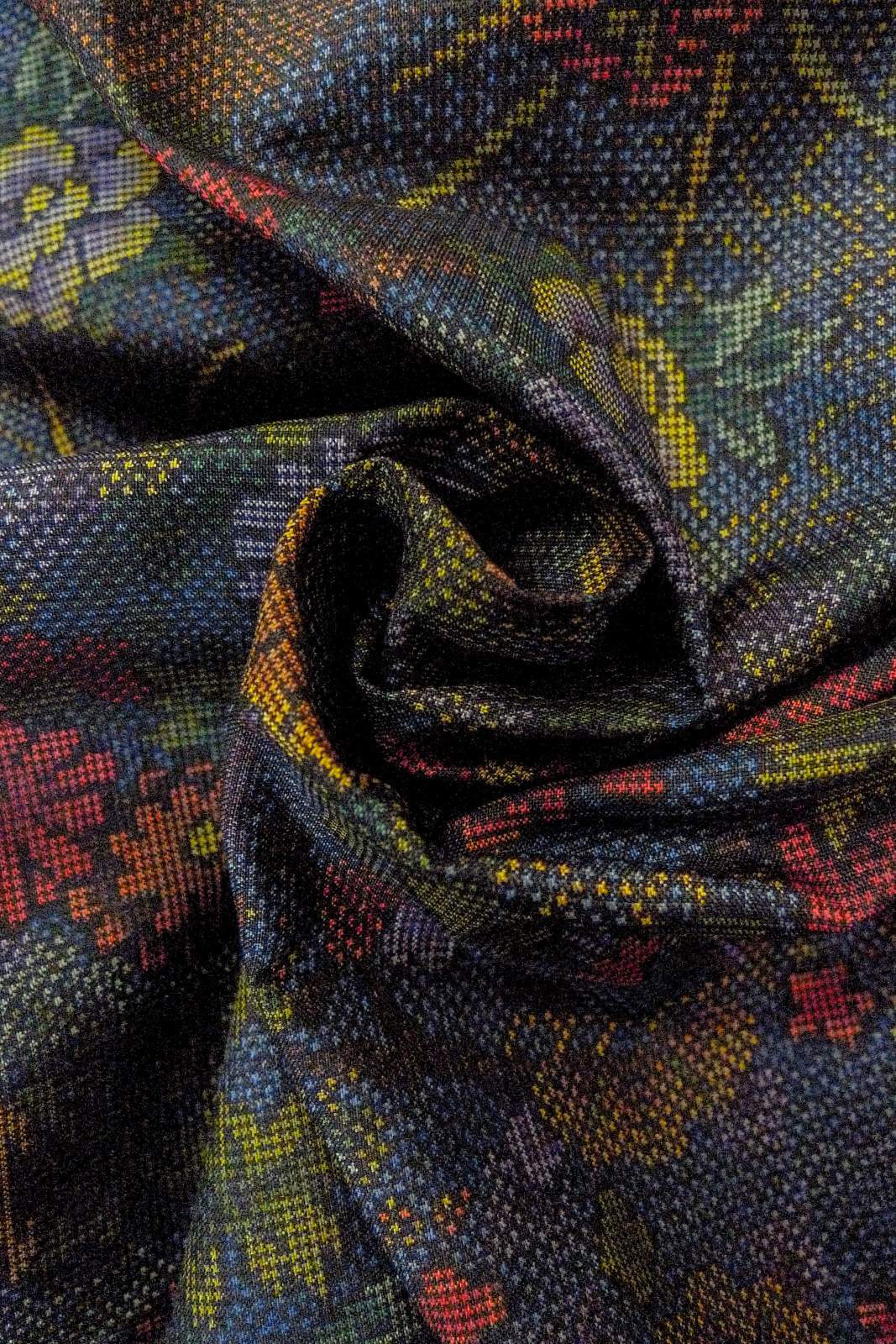 Mint O1002L Vintage Japanese kimono Dark Multi Color TSUMUGI pongee for women / Silk. Peony (Grade A)
