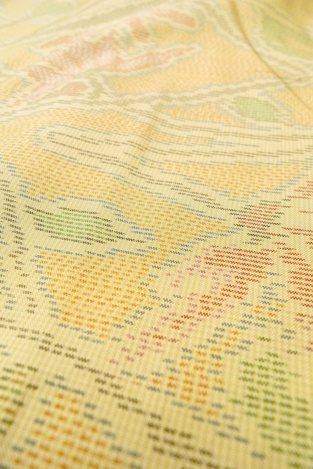 Mint O1002M Vintage Japanese kimono Pale Yellow TSUMUGI pongee for women / Silk. Flower (Grade A) [O1002M]