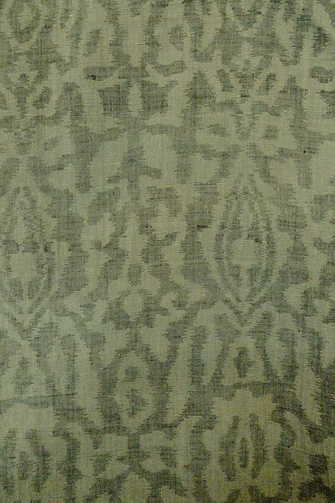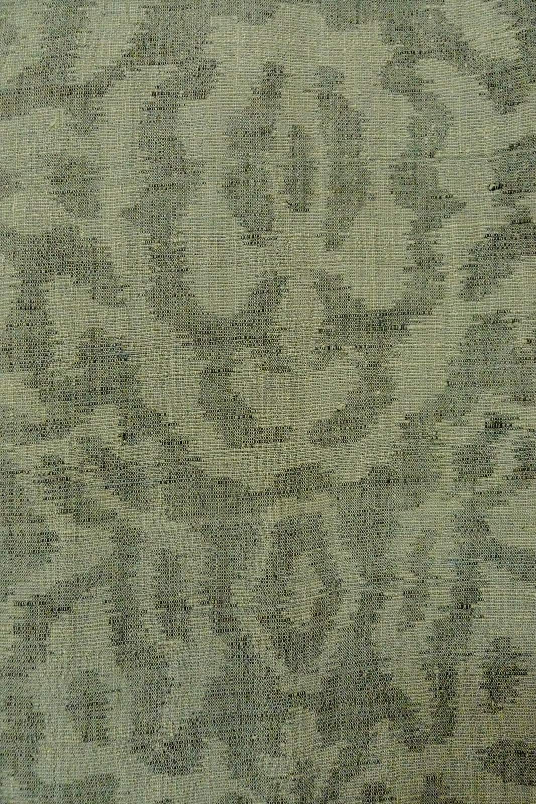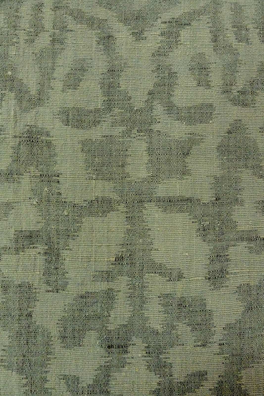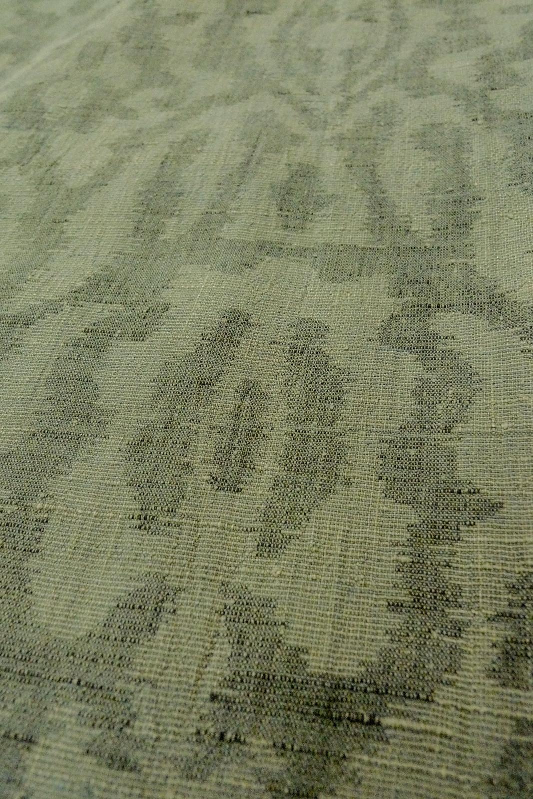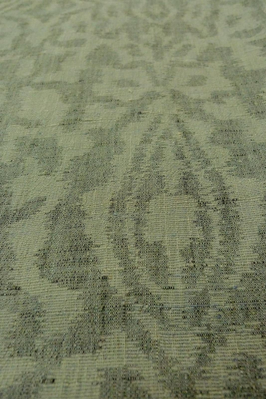 O1002O Vintage Japanese kimono Grayish Green TSUMUGI pongee for women / Linen. Chinz pattern (Grade D)