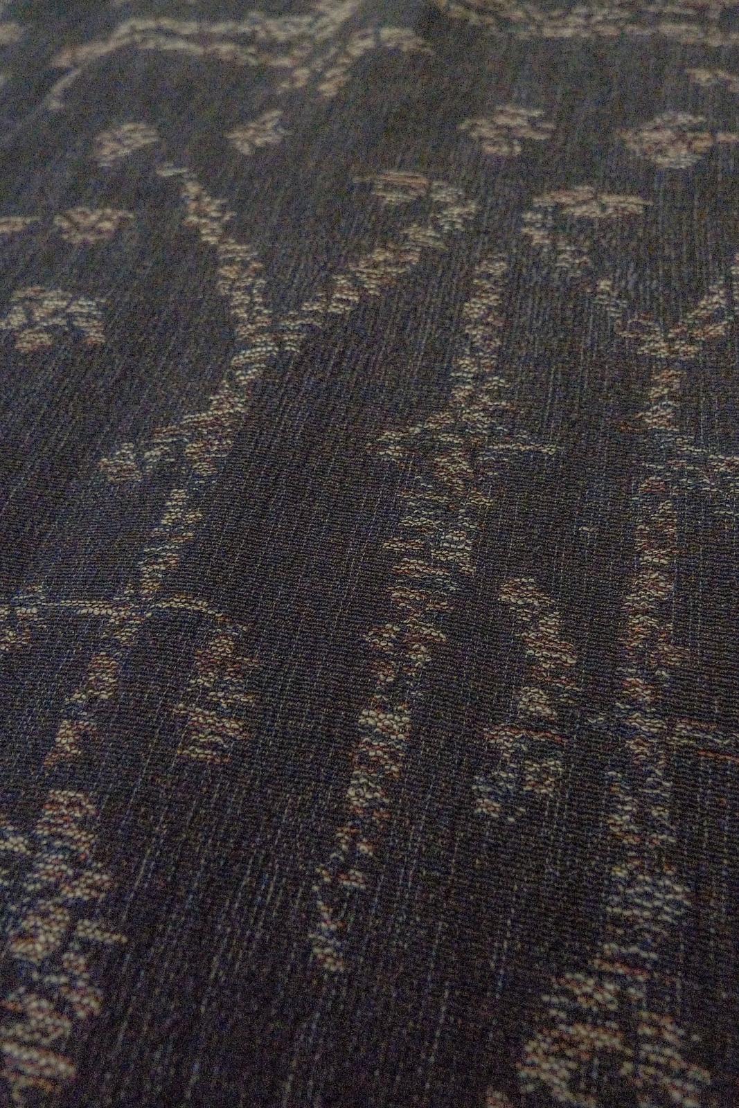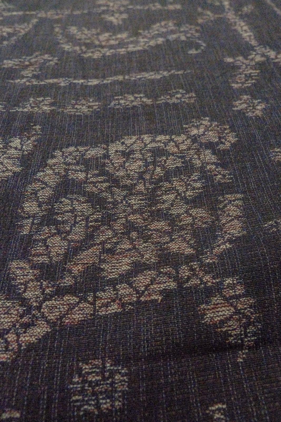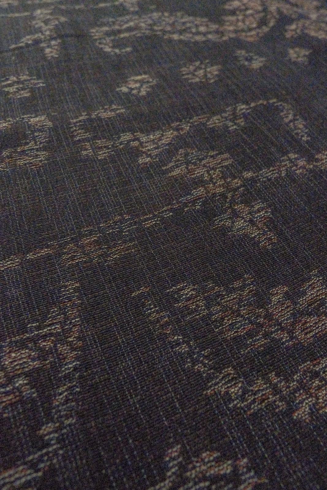 O1002P Vintage Japanese kimono Black ORI woven for women / Silk. Chinese flower, The lining has holes or rips. (Grade B)