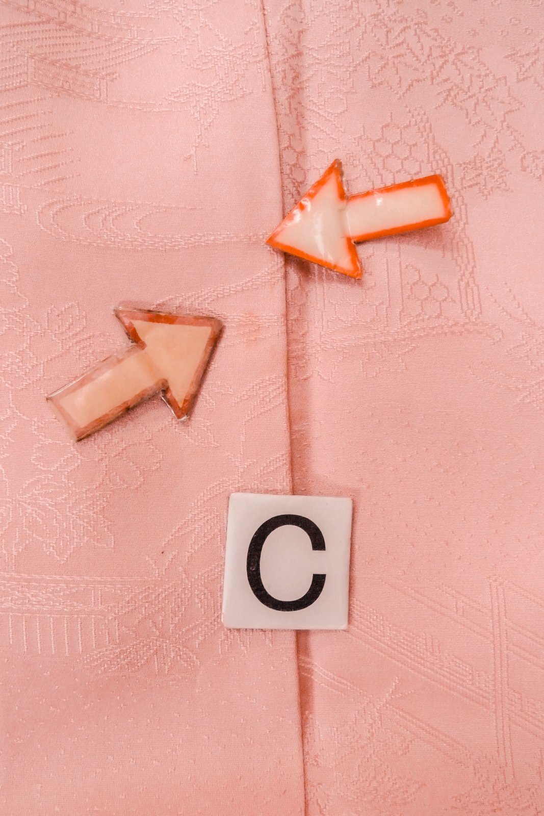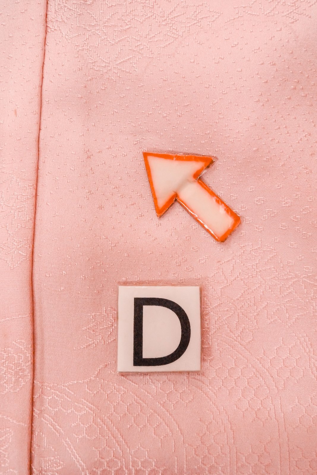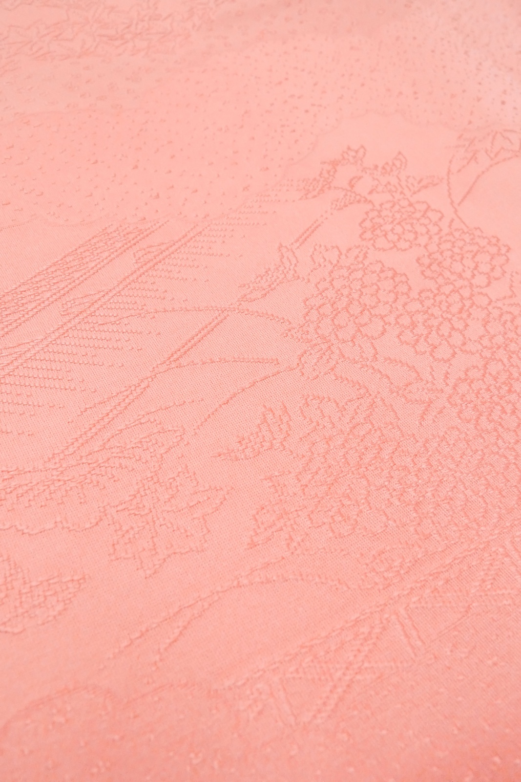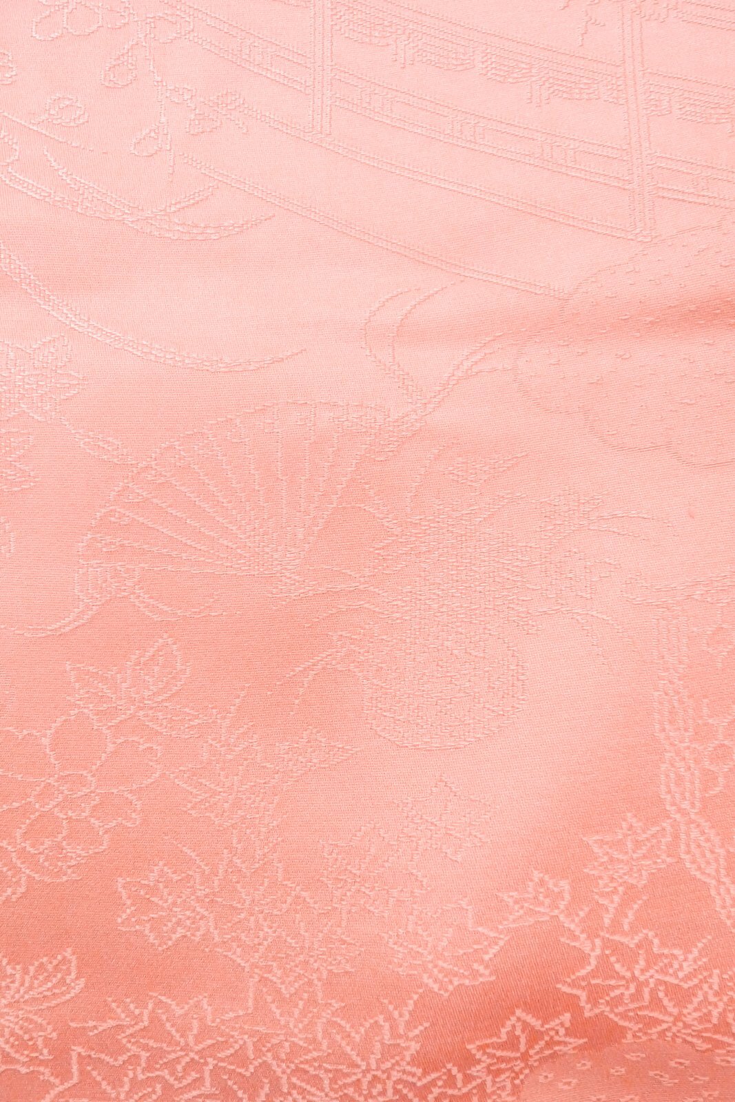 O1002Q Vintage Japanese kimono Shiny Pink IROMUJI plain colored for women / Silk., Base woven pattern: Pine tree/branch/needle, House, Stream, Gap in a cloud, Folding fan pattern (Grade B)