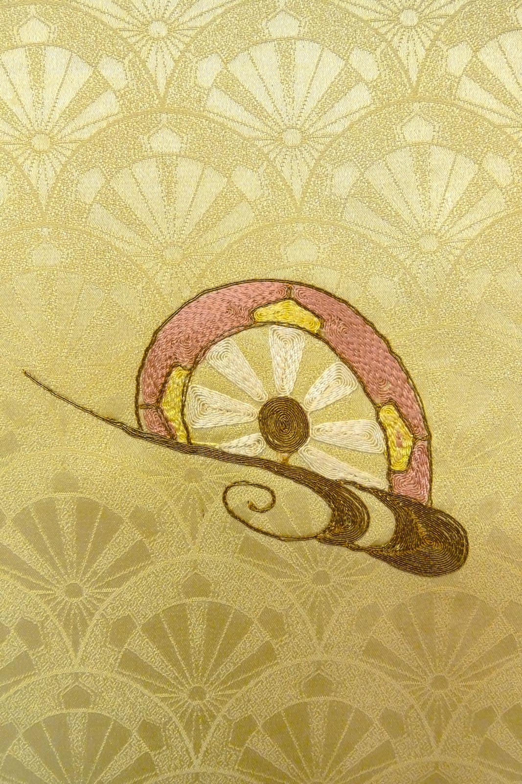 O1002X Vintage Japanese kimono Shiny Light Yellow TSUKESAGE formal for women / Silk. Wheel (Grade B) [O1002X]
