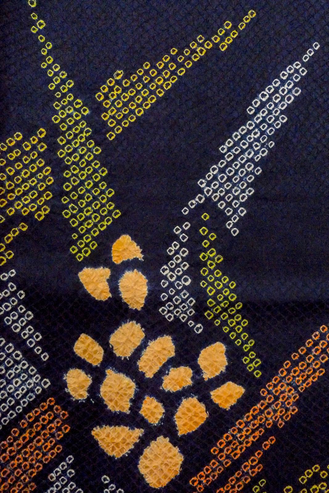 O1003C Vintage Japanese kimono Dark Indigo Blue HOUMONGI formal for women / Silk. Flower (Grade C) [O1003C]