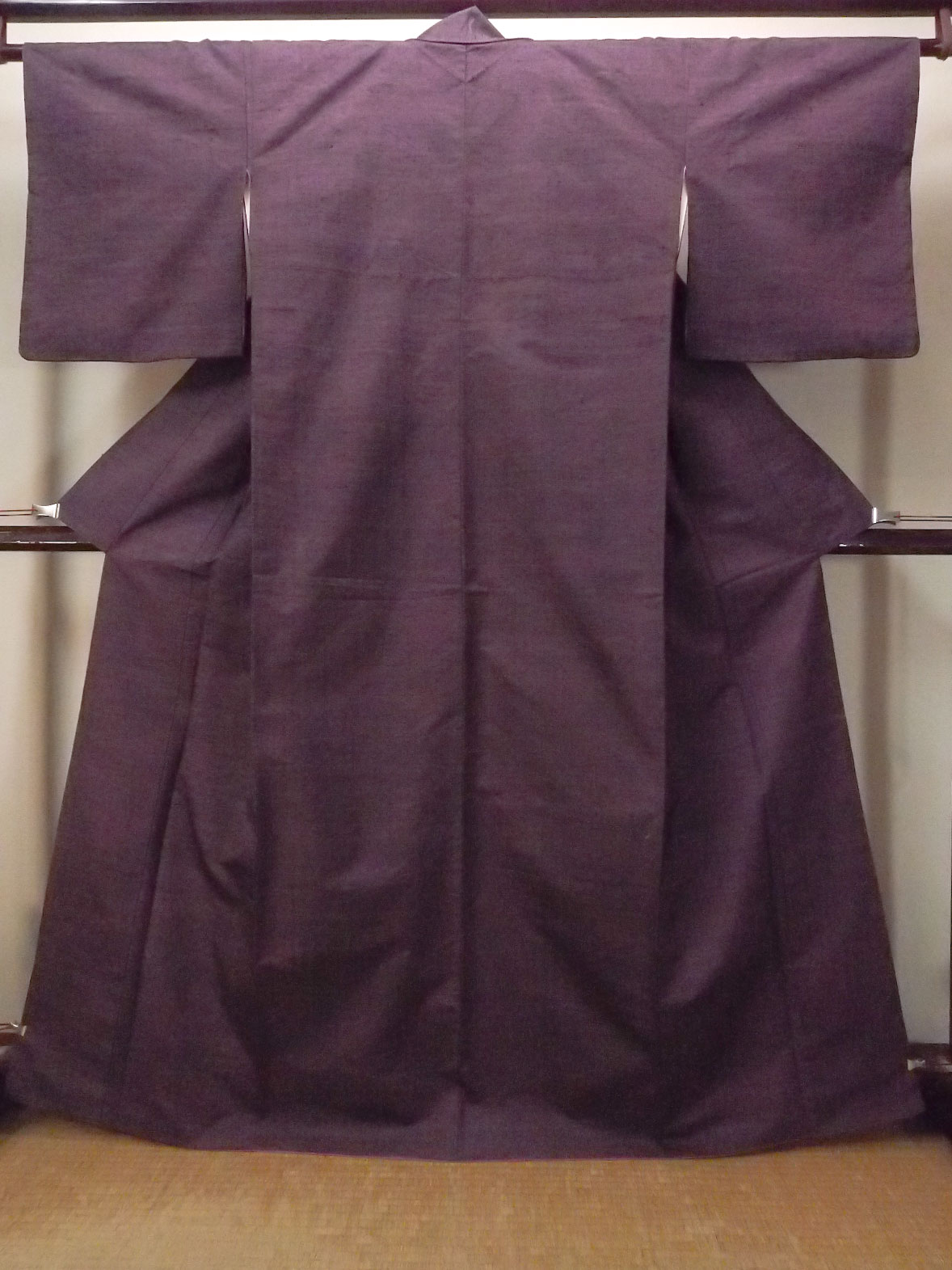 Mint O1126E Vintage Japanese kimono Dark Purple TSUMUGI pongee for women / Silk. (Grade A) [O1126E]